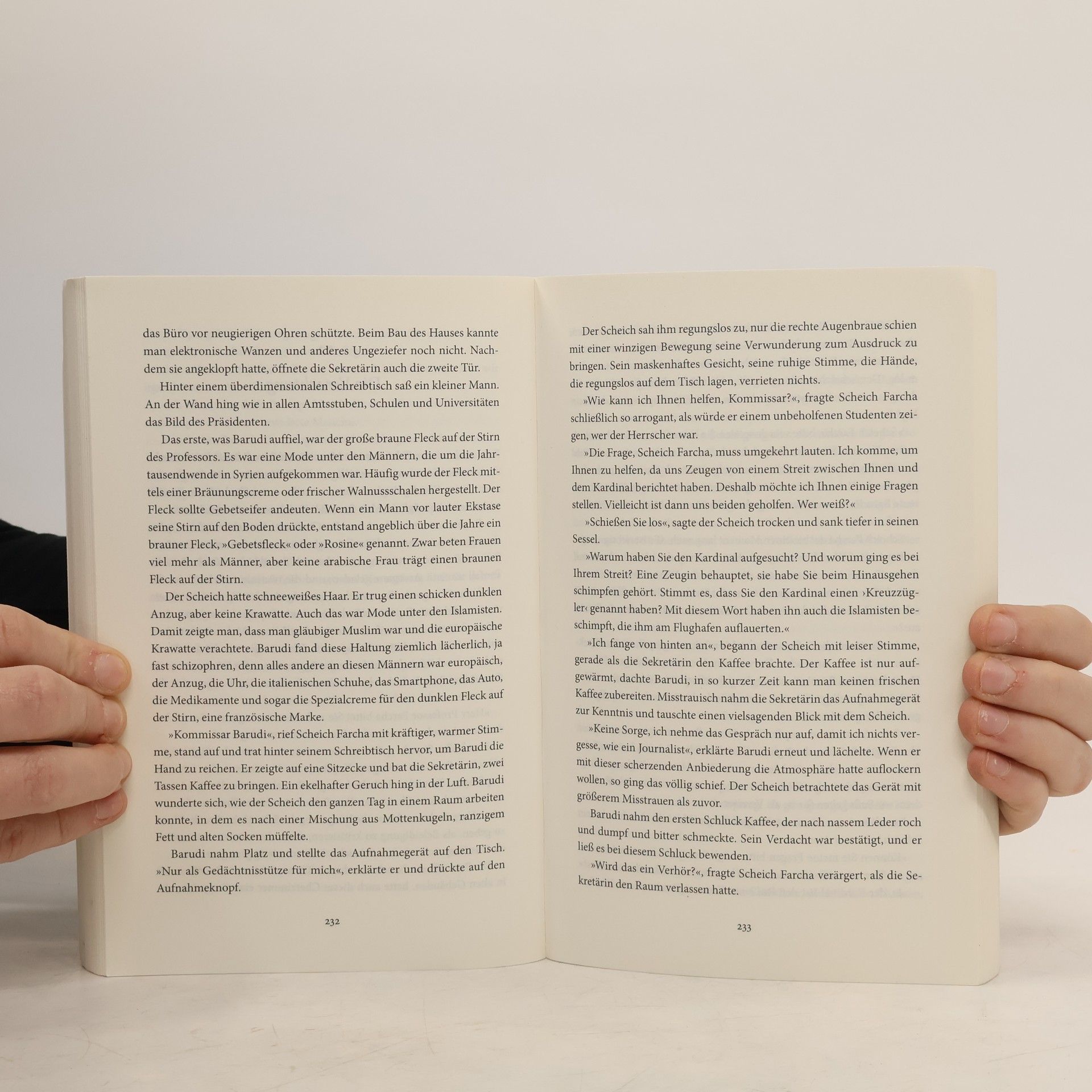 15 Geheimdienste, 1001 Theorien & ein unbeirrbarer Kommissar Es ist das Jahr 2010, noch herrscht Frieden in Syrien. Die italienische Botschaft in Damaskus bekommt ein Fass mit Olivenöl angeliefert, darin die Leiche eines Kardinals. Kommissar Barudi will das Verbrechen aufklären; Mancini, ein Kollege aus Rom, unterstützt ihn und wird sein Freund. Auf welcher geheimen Mission war der Kardinal unterwegs? Und wie stand er zu dem berühmten Bergheiligen, einem Muslim, der sich auf das Vorbild Jesu beruft? Als die beiden Kommissare der Aufklärung zum Greifen nahekommen, fallen sie in die Hände bewaffneter Islamisten.