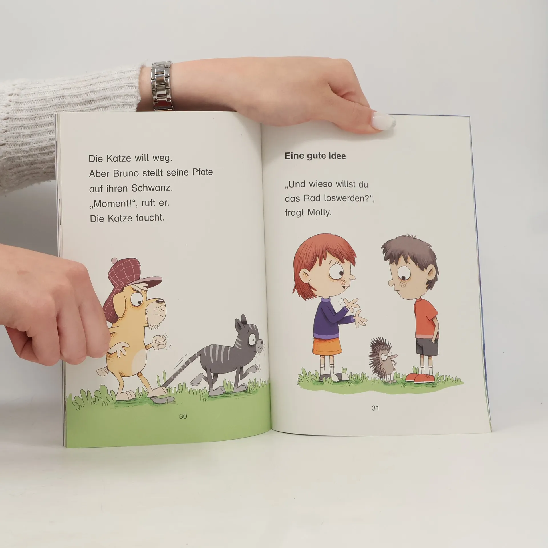 Bruno und Molly sind weltbeste Detektive! Kein Fall ist ihnen zu knifflig. Aber werden sie auch Oskars verschwundenes Fahrrad wiederfinden? Eine erste Spur führt in den Park und zu drei tierischen Dieben. Doch ein weiterer Hinweis gibt Bruno und Molly Rätsel auf. Hier gilt es wahrhaft eine richtig harte Nuss zu knacken …