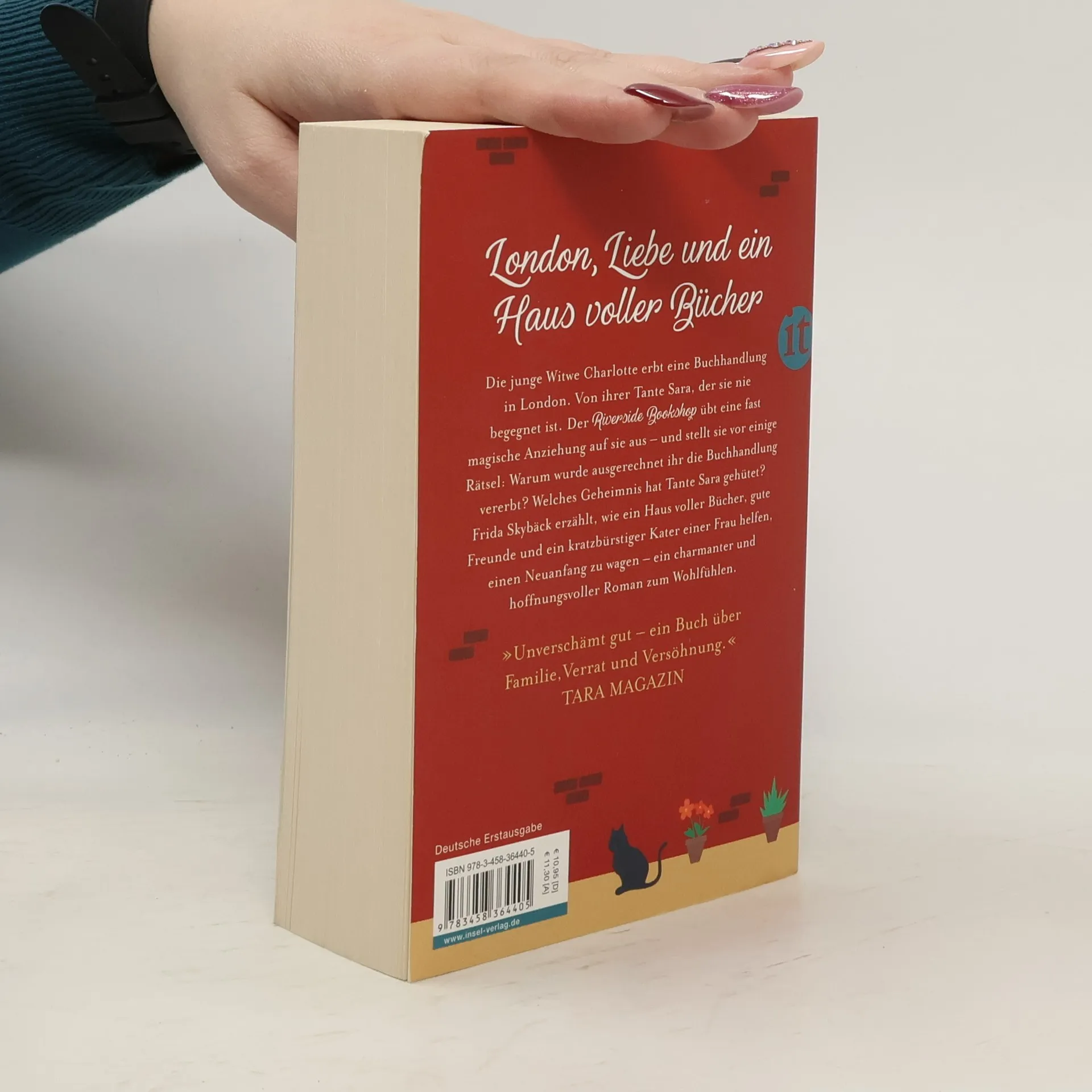Charlotte lebt in Schweden und ist eigentlich zu jung, um Witwe zu sein, zu jung, um ihren geliebten Mann verloren zu haben. Sie vergräbt sich in ihrer Arbeit, bis eine unerwartete Nachricht ihr Leben auf den Kopf stellt: Sie hat von einer entfernten Tante eine Buchhandlung in London geerbt. Kurz entschlossen fliegt Charlotte nach England, um das Haus zu verkaufen. Doch schnell fühlt sie sich mit dem Laden eng verbunden – genauso wie mit den beiden warmherzigen Mitarbeiterinnen, dem Kater Tennyson und dem Schriftsteller William. Sie versucht, das fast bankrotte Geschäft zu retten. Dabei stößt sie auf Widersprüche und Rätsel: Warum hat sie ihre Tante Sara nie getroffen, warum hat ihre Mutter nie von ihrer Vergangenheit erzählt, und was ist das dunkle Geheimnis der beiden Schwestern? Die kleine Buchhandlung am Ufer der Themse erzählt, wie ein Haus voller Bücher, gute Freunde und ein kratzbürstiger Kater einer Frau helfen, einen Neuanfang zu wagen – ein charmanter und hoffnungsvoller Roman zum Wohlfühlen.
