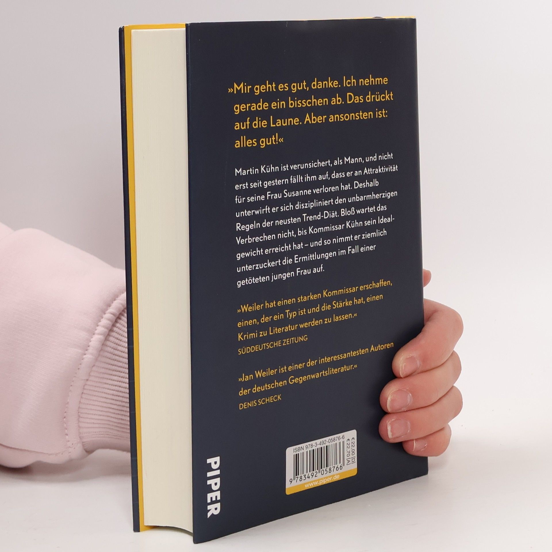 Das Leben geht zwar immer weiter, aber es wird nicht unbedingt leichter. Jedenfalls nicht für jeden von uns: Kommissar Kühn zum Beispiel hat das Gefühl, schwerer zu sein, als es ihm gut tut. In der Seele und um die Hüfte rum. Während er sich damit abplagt, Gewicht zu verlieren, um interessanter für seine Frau Susanne zu werden, muss er sich gegen die Intrigen seines vermeintlich besten Freundes und Kollegen Thomas Steierer wehren: Seine Karriere bei der Mordkommission hängt an einem immer dünneren Faden – und er bekommt es mit einem Mörder zu tun, der ihm zeigt, wie tief man als Mensch sinken kann. Mit Empathie und einzigartigem Esprit erzählt Jan Weiler von Martin Kühn, dem sich die schwere Frage nach der Leichtigkeit des Lebens stellt.