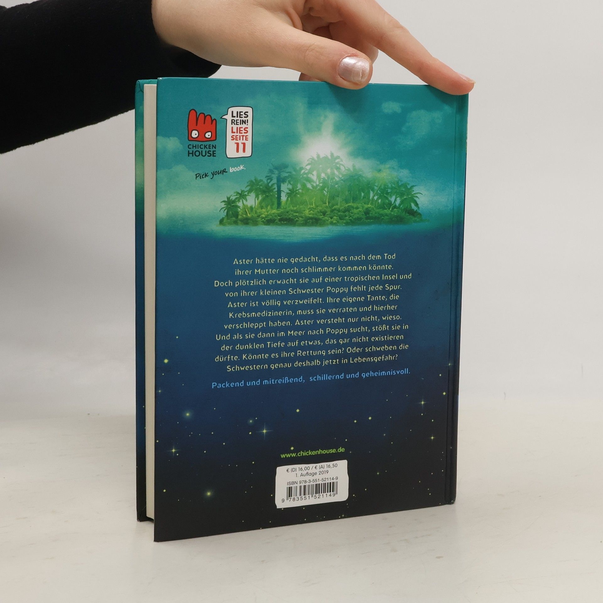 Aster hätte nie gedacht, dass es nach dem Tod ihrer Mutter noch schlimmer kommen könnte. Doch plötzlich erwacht sie auf einer tropischen Insel und von ihrer kleinen Schwester Poppy fehlt jede Spur. Aster ist völlig verzweifelt. Ihre eigene Tante, die Krebsmedizinerin, muss sie verraten und hierher verschleppt haben. Aster versteht nur nicht, wieso. Und als sie dann im Meer nach Poppy sucht, stößt sie in der dunklen Tiefe auf etwas, das gar nicht existieren dürfte. Könnte es ihre Rettung sein? Oder schweben die Schwestern genau deshalb jetzt in Lebensgefahr? Ein packender Pageturner vor atemberaubender Kulisse: mitreißend, tiefsinnig und bildstark erzählt