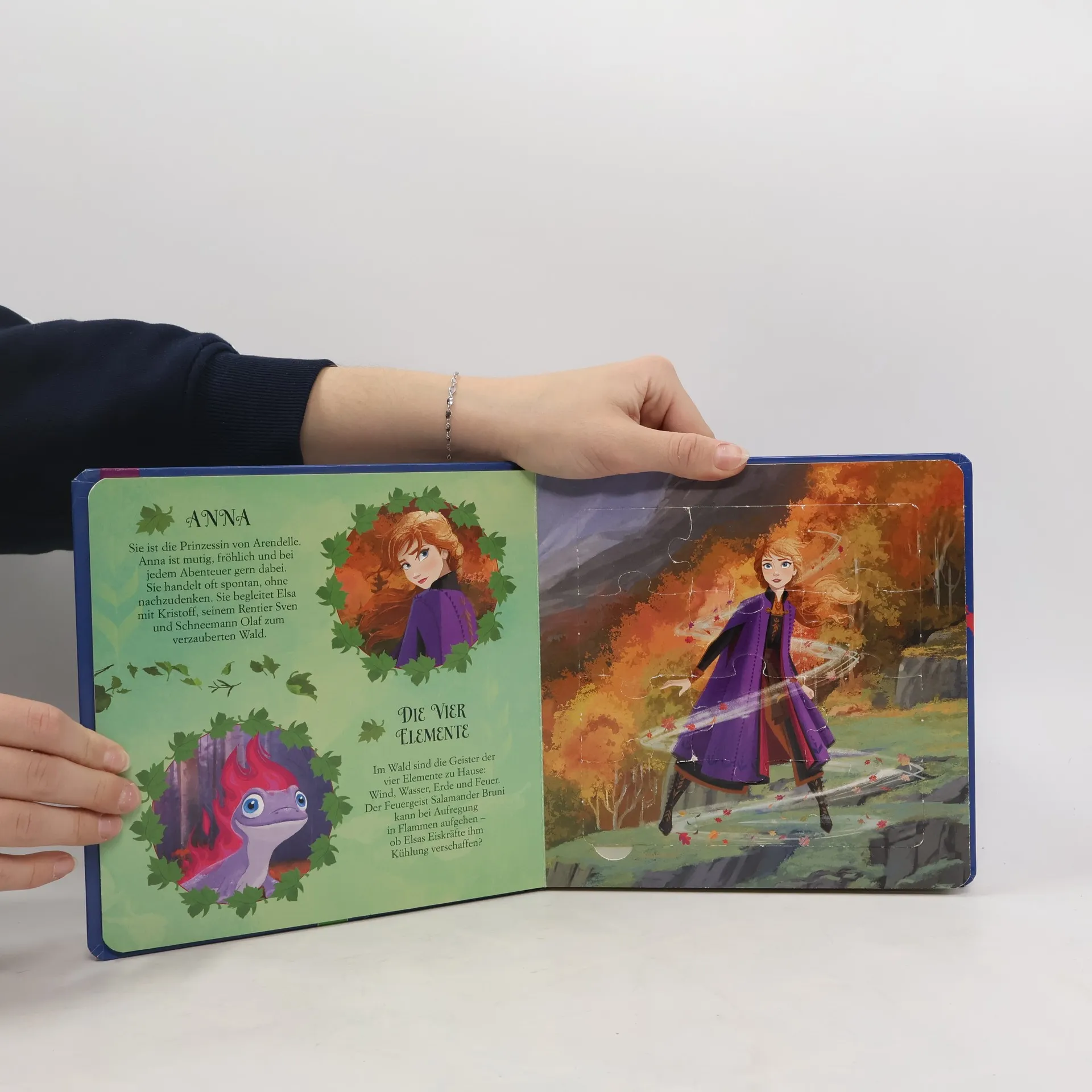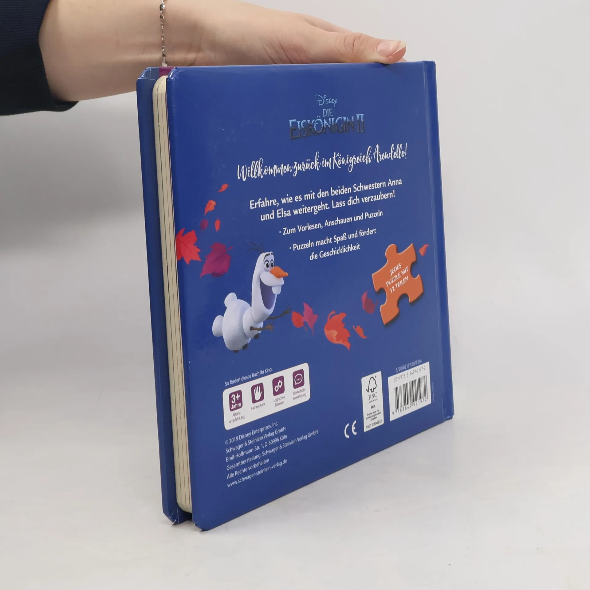 Puzzle-Spaß für alle Fans der Eiskönigin Vorlesegeschichte und Puzzle-Buch für Kinder ab 3 Jahren Zum Vorlesen, Anschauen und Puzzeln Puzzeln macht Spaß und fördert die Geschicklichkeit Willkommen zurück im Königreich Arendelle! Erfahre, wie es mit den beiden Schwestern Anna und Elsa weitergeht und lass dich verzaubern! Sechs liebevoll gestaltete Doppelseiten mit vielen kunterbunten Filmbildern aus dem neuen Kino-Hit „Die Eiskönigin 2“ laden zur spielerischen Beschäftigung mit den beliebten Filmheldinnen und -helden ein. Das Puzzeln schult die Geschicklichkeit und die Kombinationsgabe. Jedes der fünf Puzzles hat 12 Teile und eine praktische Griffhilfe, um die Puzzleteile einfach zu entnehmen. Zusätzlich gibt es unter jedem Puzzle Verständnisfragen zum Text, kleine Rätsel oder offene Fragen, die zum weiteren Erzählen anregen und die Konzentration und Aufmerksamkeit fördern. Ein tolle Puzzle-Vorlese-Kombination für alle große und kleine Fans von „Die Eiskönigin 2“!