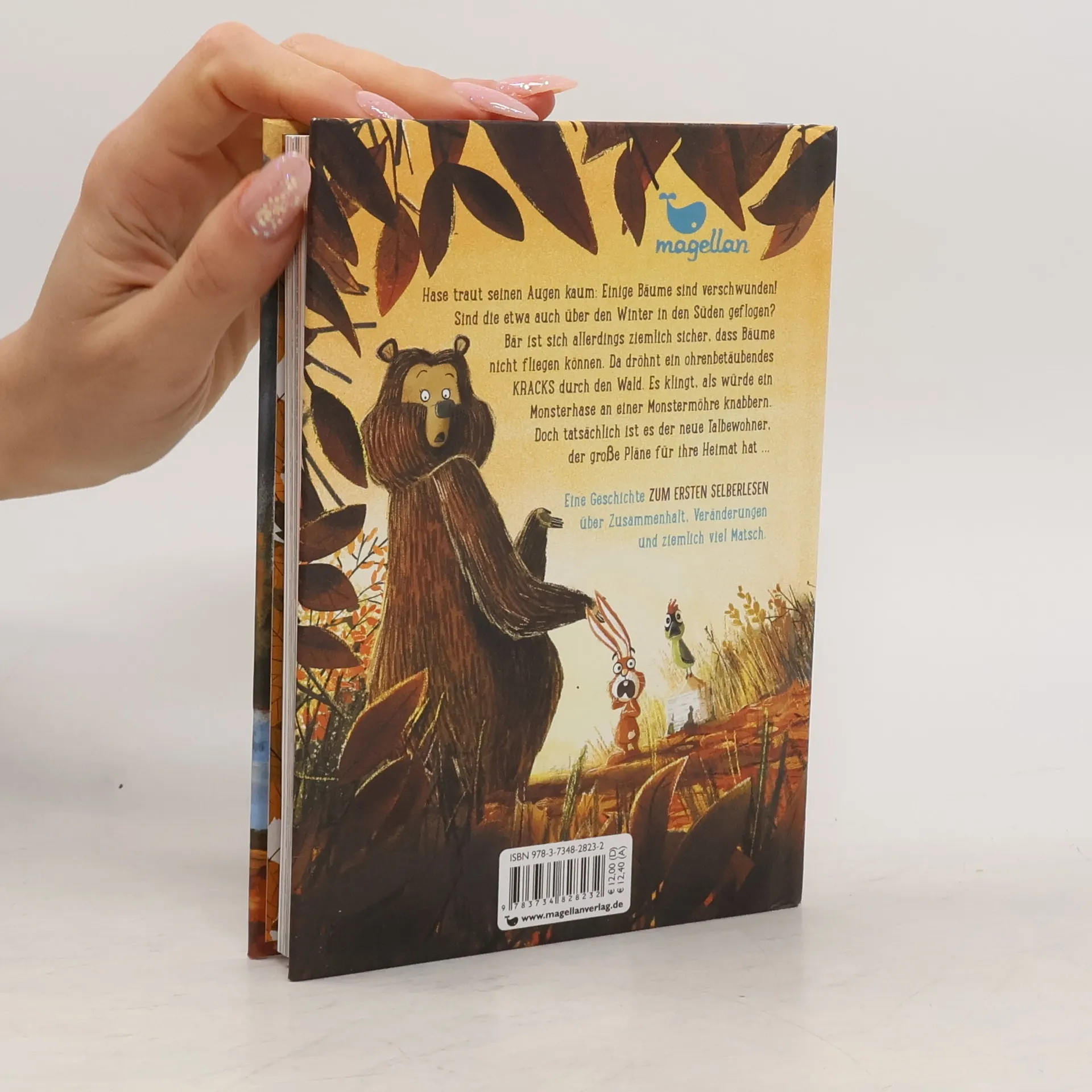 Eine tierisch humorvolle Geschichte zum ersten Selberlesen über die Freundschaft zweier Waldbewohner, den Zusammenhalt innerhalb einer Gemeinschaft und plötzlich verschwundene Lieblingskratzbäume. Hase traut seinen Augen kaum: Die Bäume sind verschwunden! Sind die etwa auch über den Winter in den Süden geflogen? Aber Bär ist sich ziemlich sicher, dass Bäume nicht fliegen können. Da unterbricht ein ohrenbetäubendes KRACKS!! ihre Überlegungen. Was ist denn das? Es klingt, als würde ein Monsterhase an einer Monstermöhre knabbern. Doch tatsächlich ist es der neue Talbewohner Biber, der große und fortschrittliche Pläne für ihre Heimat hat …