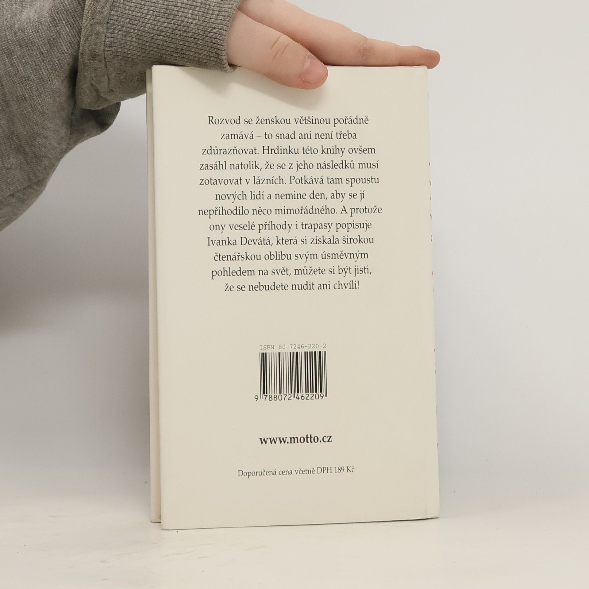 Rozvod se ženskou většinou pořádně zamává. Hrdinku této knihy ovšem zasáhl natolik, že se z jeho důsledků musí zotavovat v lázních. Potkává tam spoustu nových lidí a nemine den, aby se jí nepřihodilo něco mimořádného. A protože ony veselé příhody i trapasy popisuje Ivanka Devátá, která si získala širokou čtenářskou oblibu svým úsměvným pohledem na svět, můžete si být jisti, že se nebudete nudit ani chvíli.