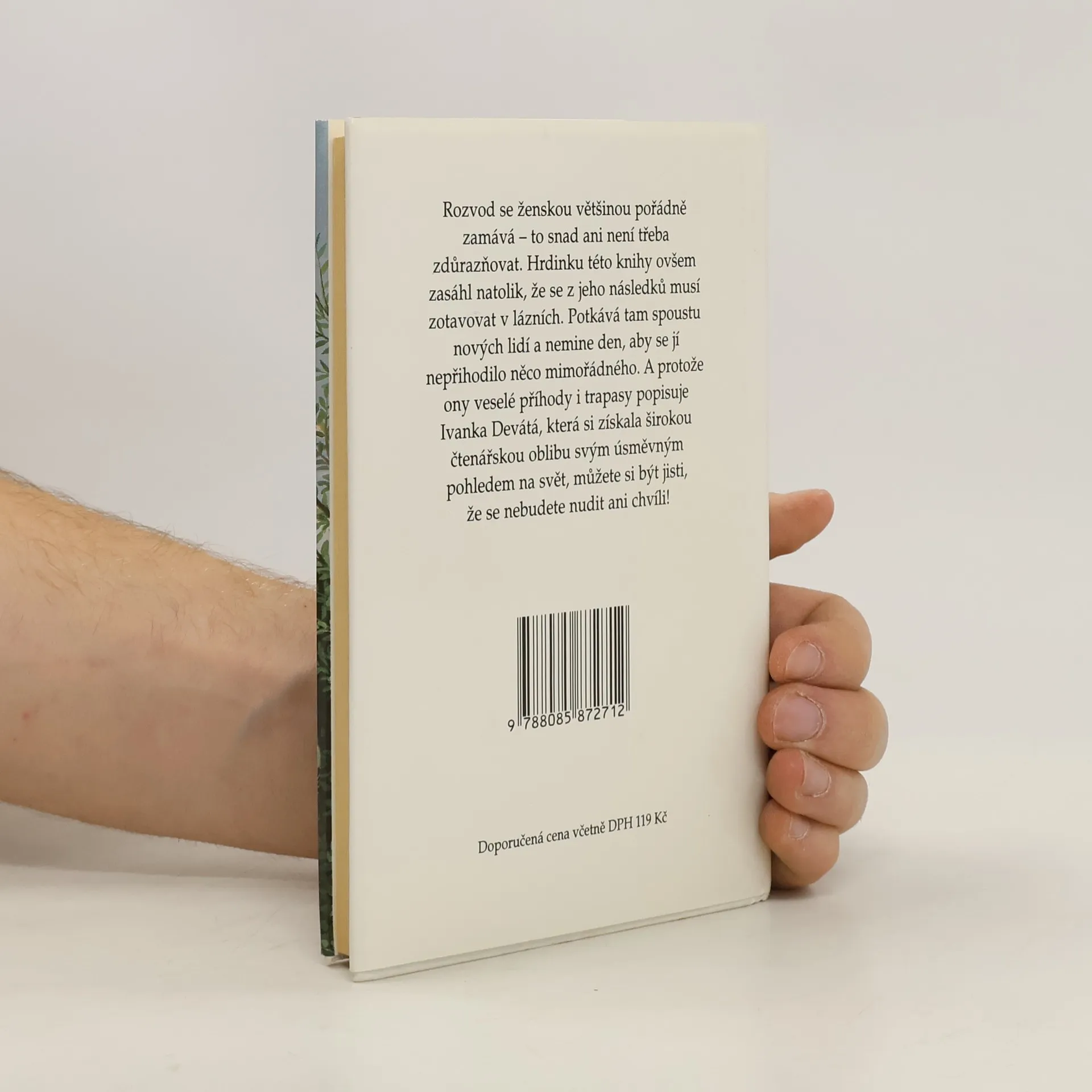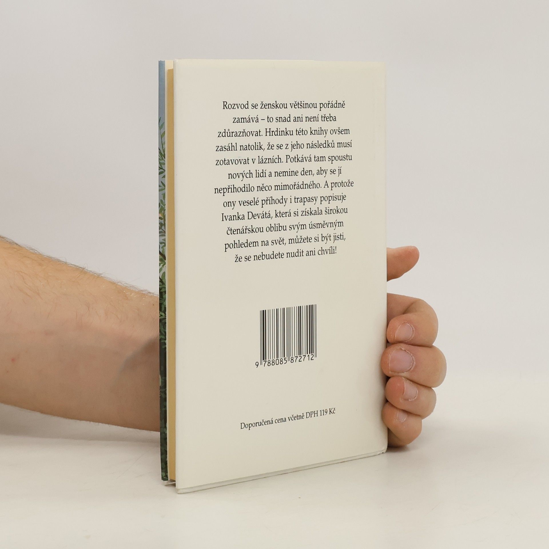 Rozvod se ženskou většinou pořádně zamává. Hrdinku této knihy ovšem zasáhl natolik, že se z jeho důsledků musí zotavovat v lázních. Potkává tam spoustu nových lidí a nemine den, aby se jí nepřihodilo něco mimořádného. A protože ony veselé příhody i trapasy popisuje Ivanka Devátá, která si získala širokou čtenářskou oblibu svým úsměvným pohledem na svět, můžete si být jisti, že se nebudete nudit ani chvíli.