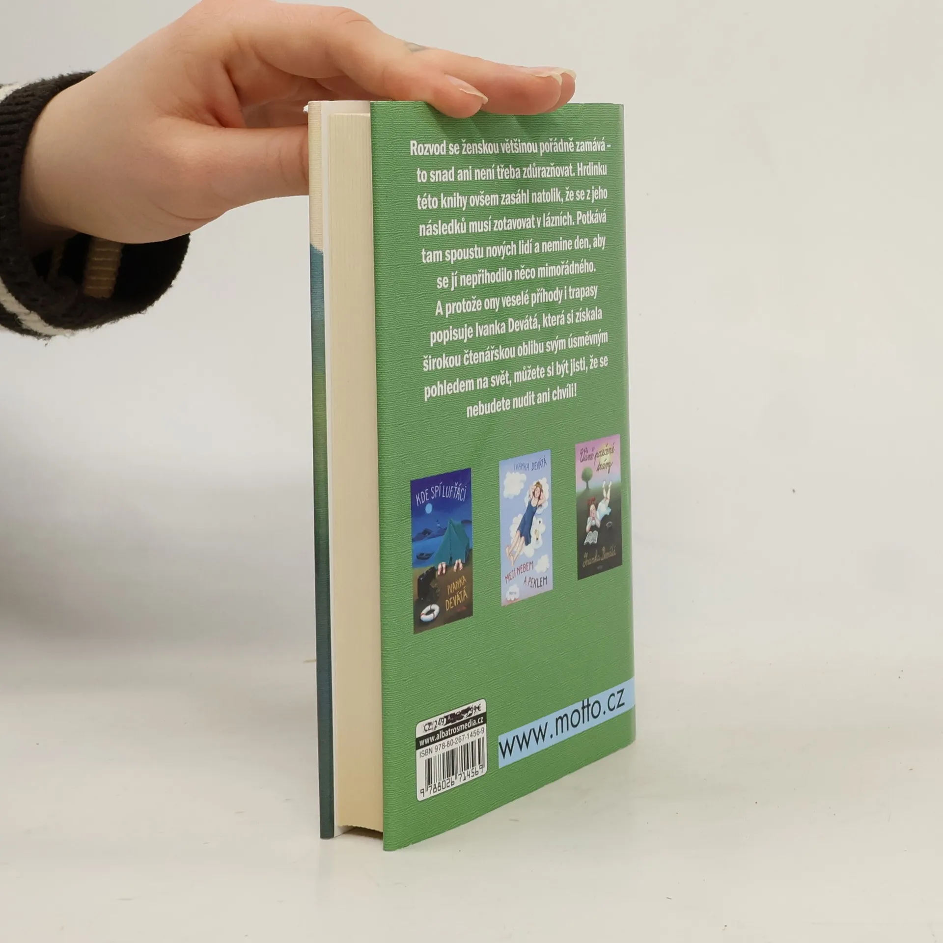 Rozvod se ženskou většinou pořádně zamává. Hrdinku této knihy ovšem zasáhl natolik, že se z jeho důsledků musí zotavovat v lázních. Potkává tam spoustu nových lidí a nemine den, aby se jí nepřihodilo něco mimořádného. A protože ony veselé příhody i trapasy popisuje Ivanka Devátá, která si získala širokou čtenářskou oblibu svým úsměvným pohledem na svět, můžete si být jisti, že se nebudete nudit ani chvíli.