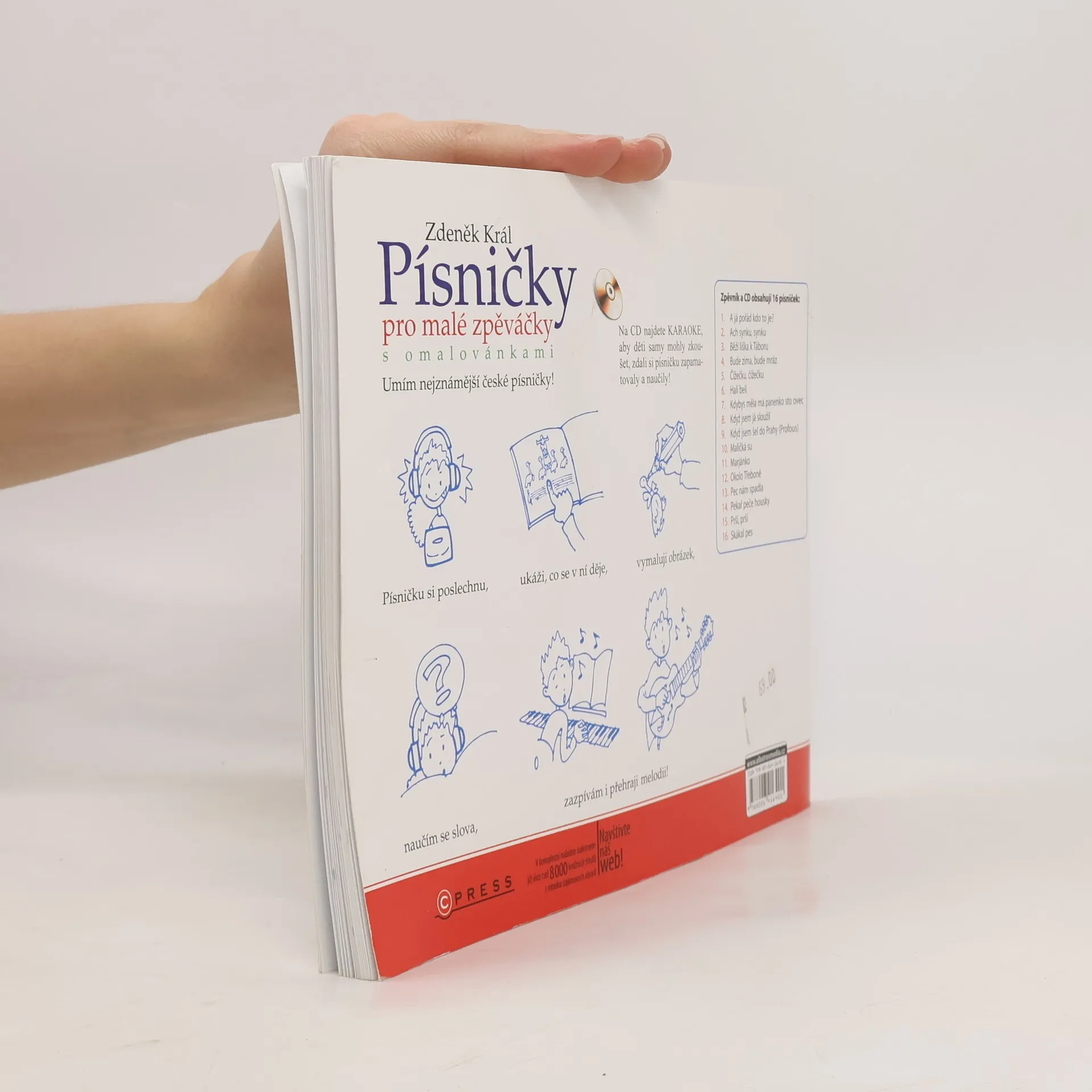 Obsahuje 16 známých písniček s texty a notací