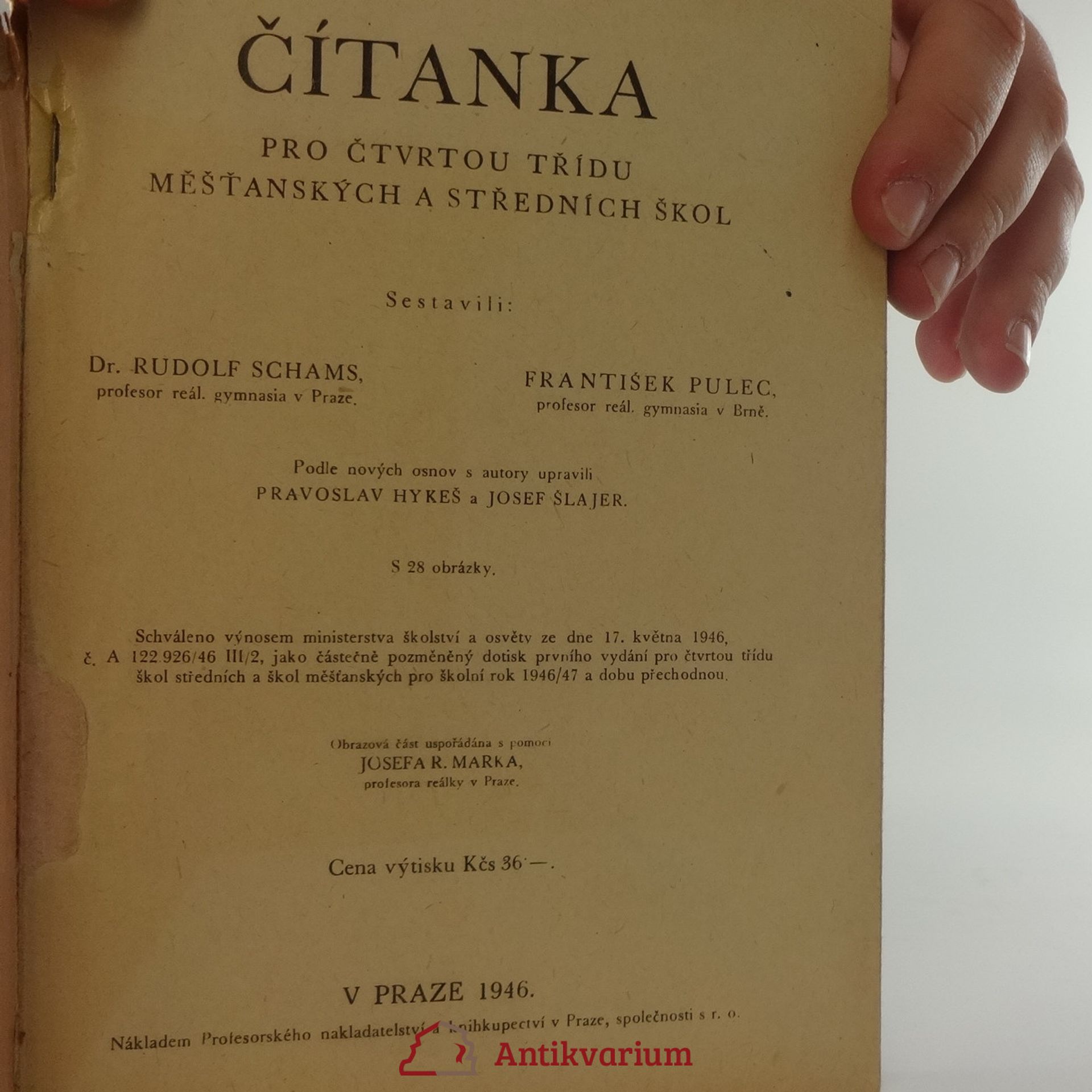 Čítanka pro čtvrtou třídu měšťanských a středních škol, František Pulec, Pravoslav Hykeš, Rudolf Schams, Šlajer Josef