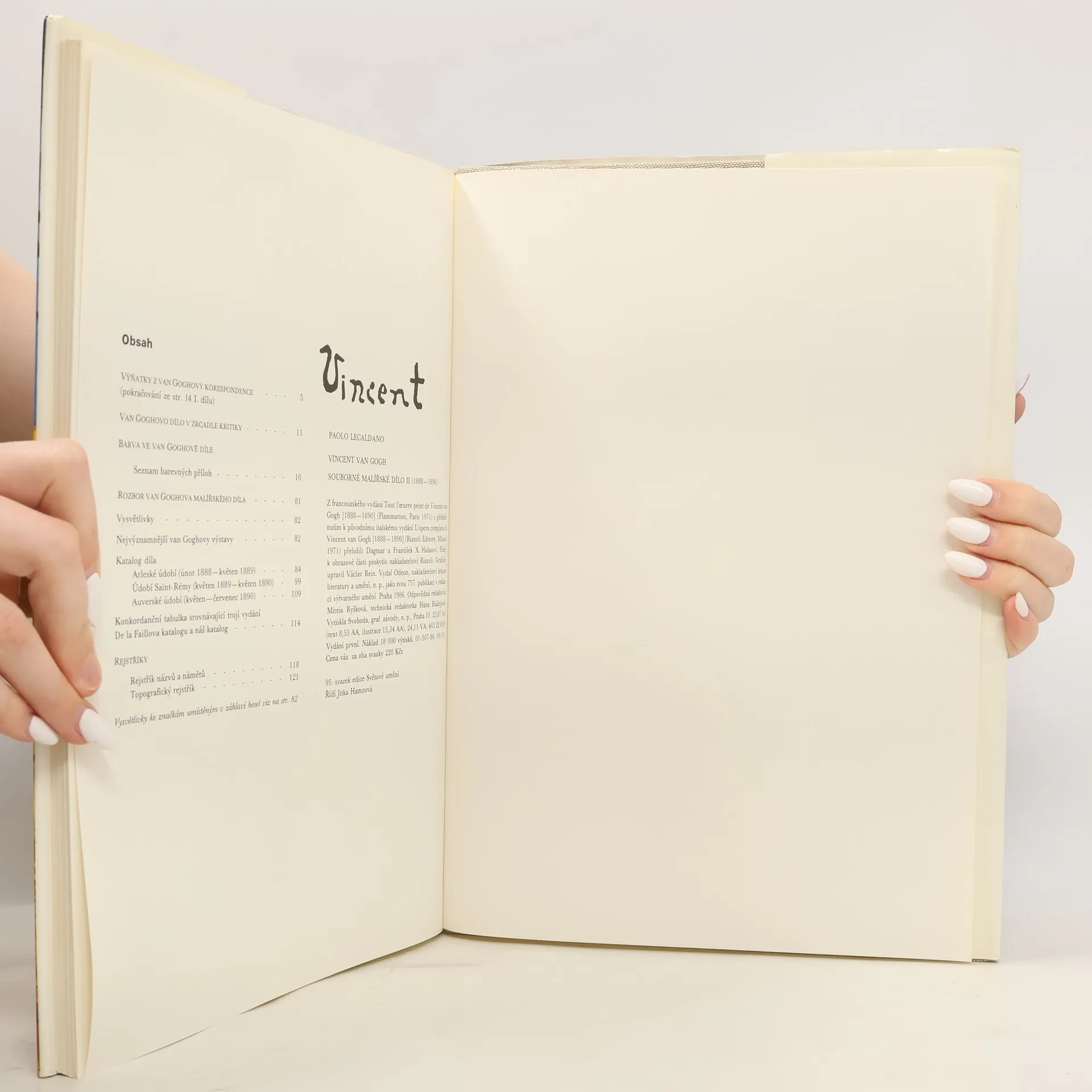 Souborné malířské dílo II (1888–1890). Obsahuje výňatky z van Goghovy korespondence, seznam barevných příloh, nejvýznamnější van Goghovy výstavy, katalog díla, konkordanční tabulku, rejstřík názvů a námětů, topografický rejstřík. Z francouzského vydání Tout l'œuvre peint de Vincent van Gogh [1888–1890] (Flammarion, Paris 1971) s přihlédnutím k původnímu italskému vydání L'opera completa di Vincent van Gogh [1888–1890] (Rizzoli Editore, Milano 1971) přeložili Dagmar a František X. Halasovi. Filmy k obrazové části poskytlo nakladatelství Rizzoli. Graficky upravil Václav Rein.