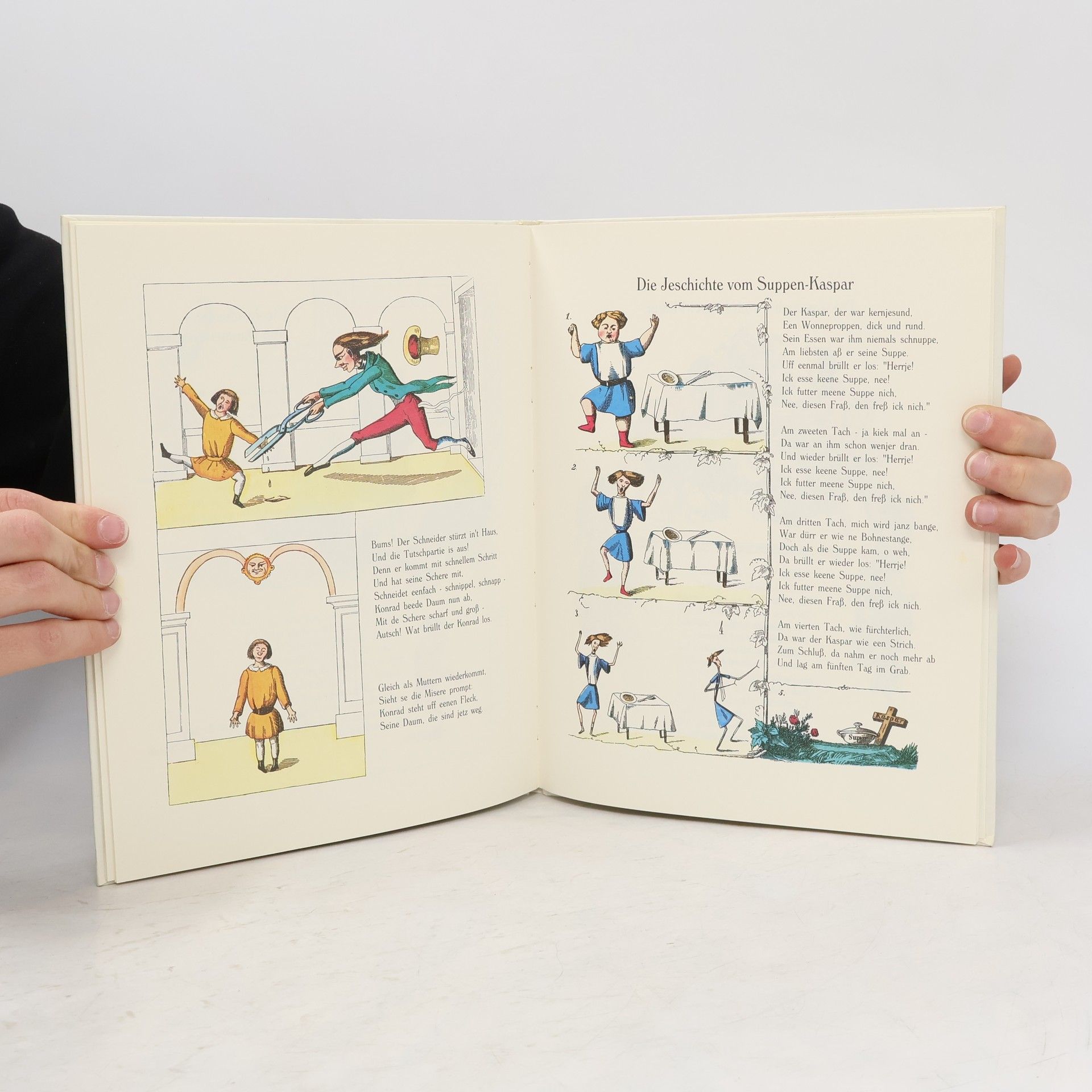 1844 suchte der Arzt Heinrich Hoffmann ein Bilderbuch als Weihnachtsgeschenk für seinen dreijährigen Sohn Carl, fand jedoch nichts Passendes. In der Zeitschrift „Gegen“ beschreibt Hoffmann, dass er lange Erzählungen oder moralische Geschichten vorfand, die nicht für Kinder in diesem Alter geeignet waren. Schließlich kehrte er mit einem leeren Schreibheft zurück und beschloss, ein eigenes Bilderbuch zu erstellen. Das Geschenk kam gut an und erregte das Interesse seiner erwachsenen Freunde, die ihn drängten, das Buch zu veröffentlichen. Zunächst lehnte er ab, doch ein befreundeter Verleger konnte ihn überzeugen. 1845 erschien das Buch erstmals unter dem Titel „Lustige Geschichten und drollige Bilder für Kinder von 3–6 Jahren“, ab der vierten Auflage 1847 als „Struwwelpeter“. Seit 1858 gab es veränderte Darstellungen. Hoffmann erzählte Geschichten über unartige Kinder, die nicht auf ihre Eltern hören und dafür bestraft werden, wie der „bitterböse Friederich“, der Tiere quält, oder Paulinchen, die mit Streichhölzern spielt. Auch positive Geschichten, wie die vom Hasen, der den Jäger überlistet, sind enthalten. Namen wie Zappelphilipp und Suppenkaspar sind in die deutsche Sprache eingegangen, und Textpassagen wie „Konrad“ sprach die Frau Mama, „ich geh aus und Du bleibst da“ sind heute allgemein bekannt.