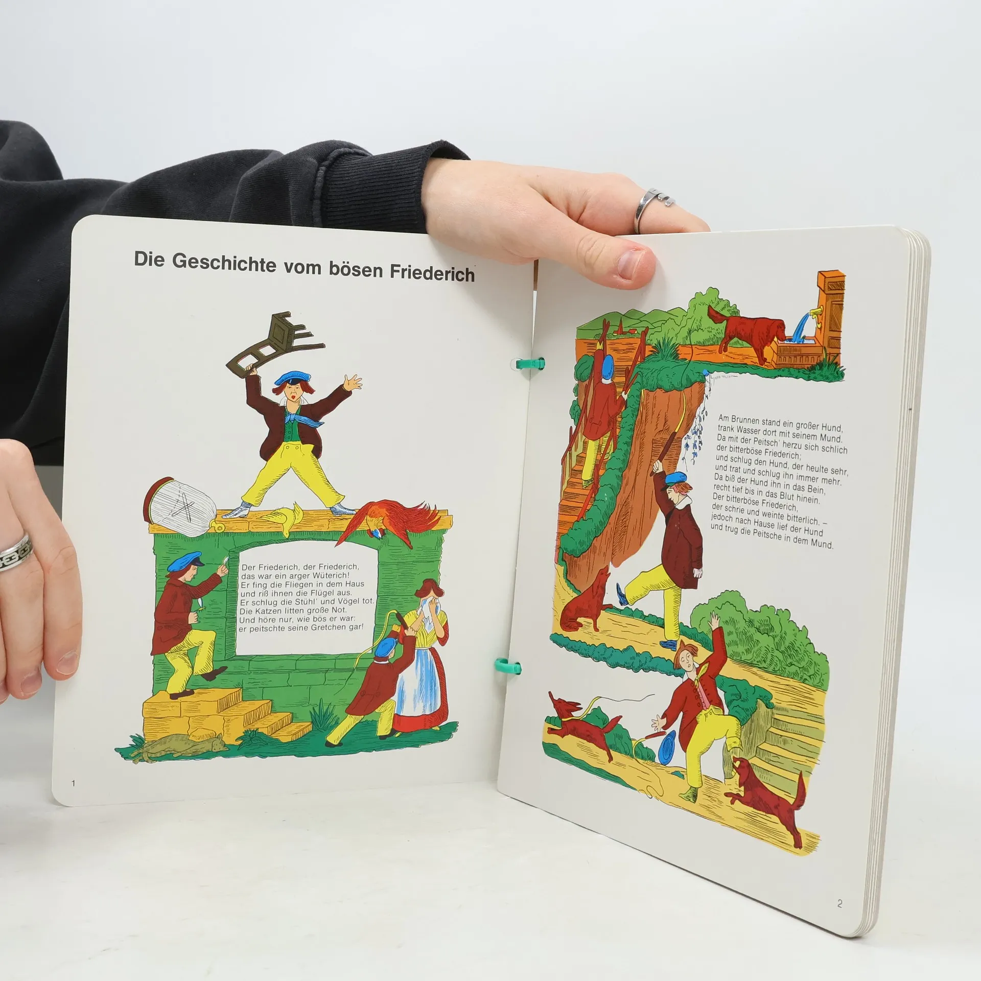 1844 suchte der Arzt Heinrich Hoffmann ein Bilderbuch als Weihnachtsgeschenk für seinen dreijährigen Sohn Carl, fand jedoch nichts Passendes. In der Zeitschrift „Gegen“ beschreibt Hoffmann, dass er lange Erzählungen oder moralische Geschichten vorfand, die nicht für Kinder in diesem Alter geeignet waren. Schließlich kehrte er mit einem leeren Schreibheft zurück und beschloss, ein eigenes Bilderbuch zu erstellen. Das Geschenk kam gut an und erregte das Interesse seiner erwachsenen Freunde, die ihn drängten, das Buch zu veröffentlichen. Zunächst lehnte er ab, doch ein befreundeter Verleger konnte ihn überzeugen. 1845 erschien das Buch erstmals unter dem Titel „Lustige Geschichten und drollige Bilder für Kinder von 3–6 Jahren“, ab der vierten Auflage 1847 als „Struwwelpeter“. Seit 1858 gab es veränderte Darstellungen. Hoffmann erzählte Geschichten über unartige Kinder, die nicht auf ihre Eltern hören und dafür bestraft werden, wie der „bitterböse Friederich“, der Tiere quält, oder Paulinchen, die mit Streichhölzern spielt. Auch positive Geschichten, wie die vom Hasen, der den Jäger überlistet, sind enthalten. Namen wie Zappelphilipp und Suppenkaspar sind in die deutsche Sprache eingegangen, und Textpassagen wie „Konrad“ sprach die Frau Mama, „ich geh aus und Du bleibst da“ sind heute allgemein bekannt.
