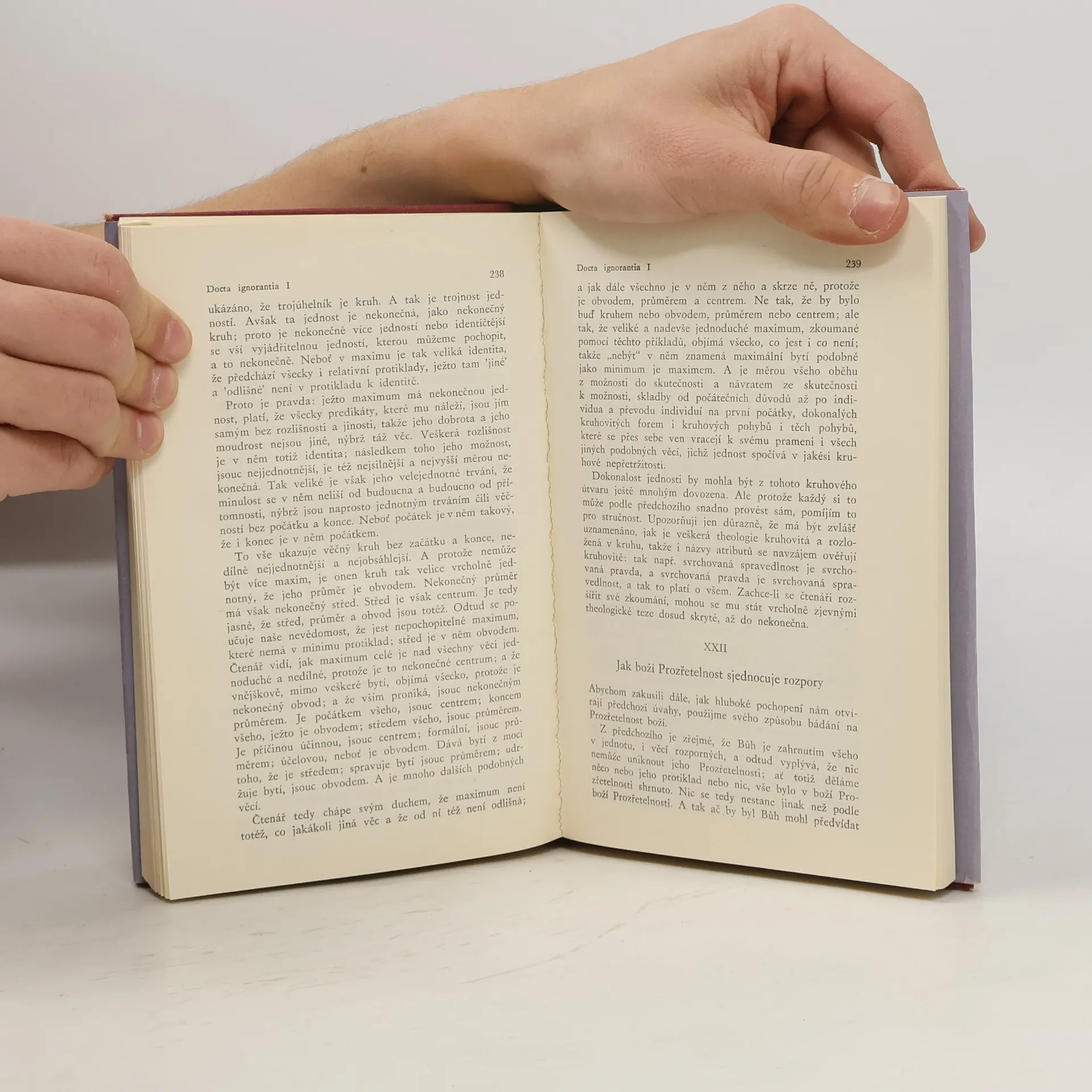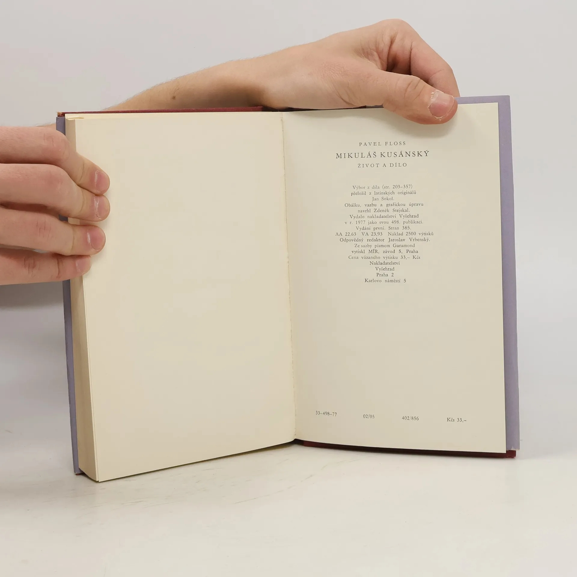 Životopisná publikace o životě a díle slavného renesančního myslitele (1401–1464), přírodovědce a reformátora, který žil v městečku Kues na řece Mosele. Mimo životpisný přehled uvádí obsáhlé ukázky z jeho díla, na konci poznámky, vysvětlivky a komentáře, rejstřík osob.