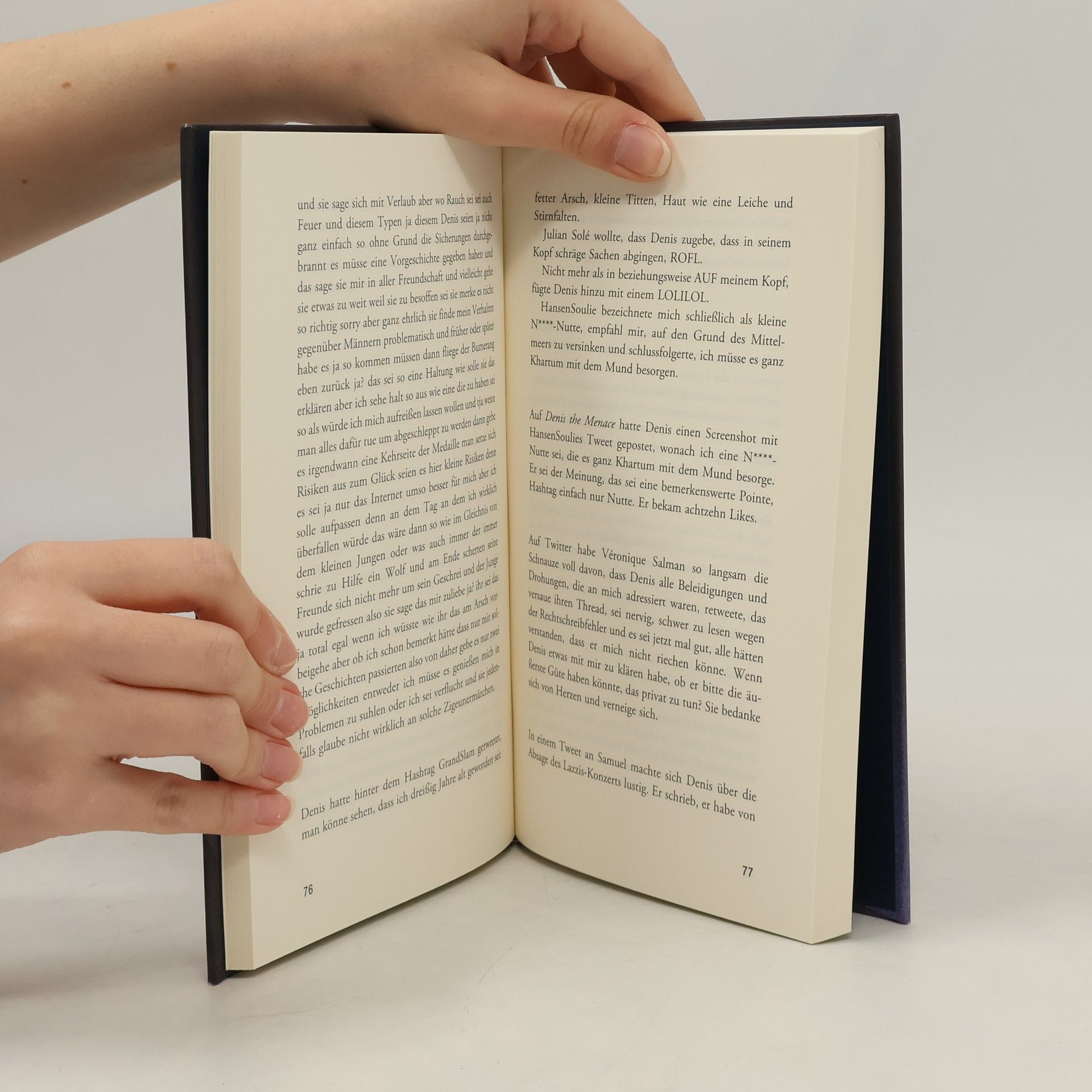 Eine Frau bekommt eine Nachricht auf Facebook. Sie ist Radiomoderatorin und Denis ein Bewunderer, dessen Freundschaftsanfrage sie angenommen hat. Zögerlich lässt sie sich auf den Austausch ein und es beginnt eine Eskalation, über die sie von Anfang an keine Gewalt hat: Seine erst anbiedernd verehrenden Nachrichten werden immer aufdringlicher, schließlich offen sexistisch und rassistisch. Als sie sich von ihm distanziert, beginnt Denis, sie zu demütigen, ihr bei der Arbeit nachzustellen und Gerüchte über sie zu verbreiten. Freunde und Kolleginnen, Polizei und Anwälte reagieren hilflos oder mit Unverständnis, während das Leben der Erzählerin langsam zerstört wird. Schließlich nimmt sie Rache – und wird selbst zur Täterin erklärt. »Rote Augen« ist ein Roman, der einen nicht mehr loslässt: Mit dem Kunstgriff einer Erzählerin, die durchgehend in indirekter Rede berichtet und somit nur darüber charakterisiert wird, was andere über sie sagen, macht Myriam Leroy die Machtlosigkeit und Isolation spürbar, der Opfer digitaler Gewalt ausgesetzt sind und die sie selbst erlebt hat. Sie zeigt: Der Frauenhass, der sich in den sozialen Netzwerken Bahn bricht, ist kein Online-Phänomen – sondern ein höchst realer Albtraum.