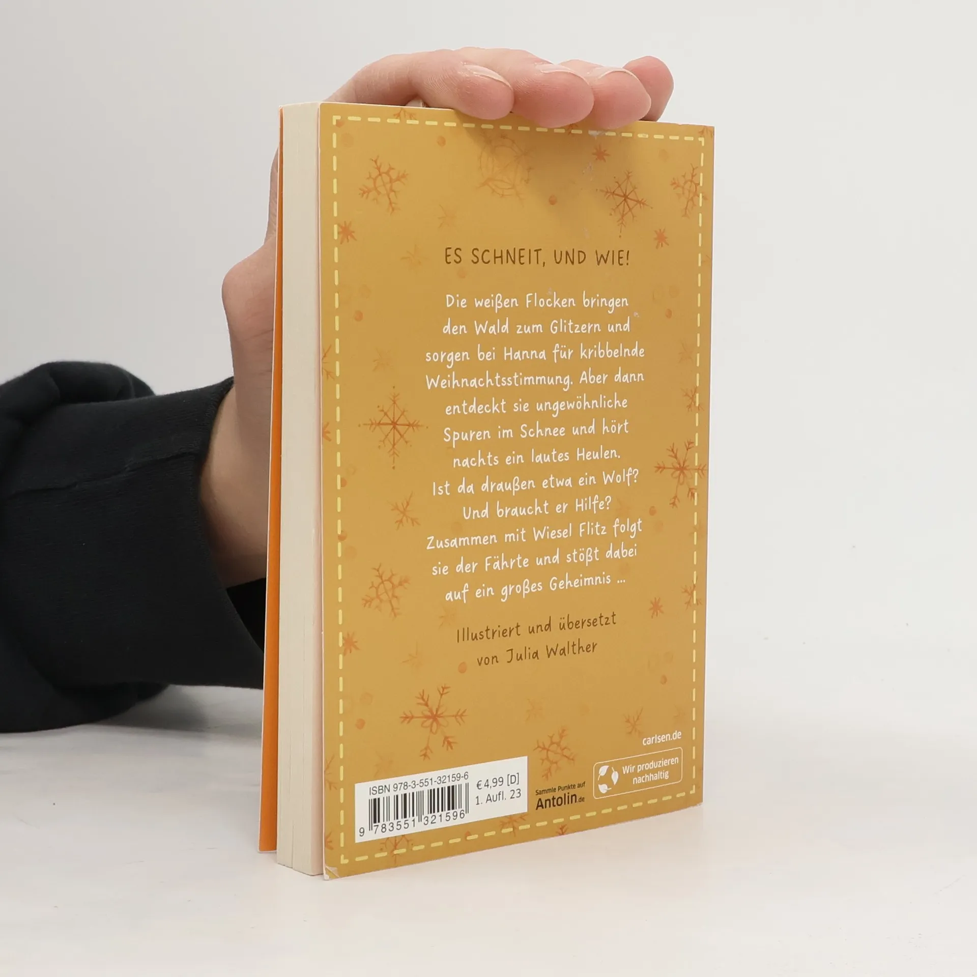 Ein zauberhaftes Abenteuer für Hanna und ihr magisches Wiesel Flitz - warmherzig und herrlich weihnachtlich! Es schneit, und wie! Die weißen Flocken bringen den Wald zum Glitzern und sorgen bei Hanna für kribbelnde Weihnachtsstimmung. Aber dann entdeckt sie ungewöhnliche Spuren im Schnee und hört nachts ein lautes, schmerzerfülltes Heulen. Ist da draußen etwa ein Wolf? Und braucht er Hilfe? Hanna ist nicht ganz wohl bei dem Gedanken an das Raubtier. Doch als Hüterin des Waldes ist es ihre Aufgabe, Tieren in Not zu helfen. Deshalb folgt sie mit Wiesel Flitz der Fährte und stößt dabei auf ein großes Geheimnis … Eine Wintergeschichte für Kinder ab 8 - mit liebevollen Bildern von Julia Walther. Band 1: Hannas Geheimnis Band 2: Häschen in Not Band 3: Theater mit Familie Igel Band 4: Spuren im Schnee Band 5: Rettung im Doppelpack