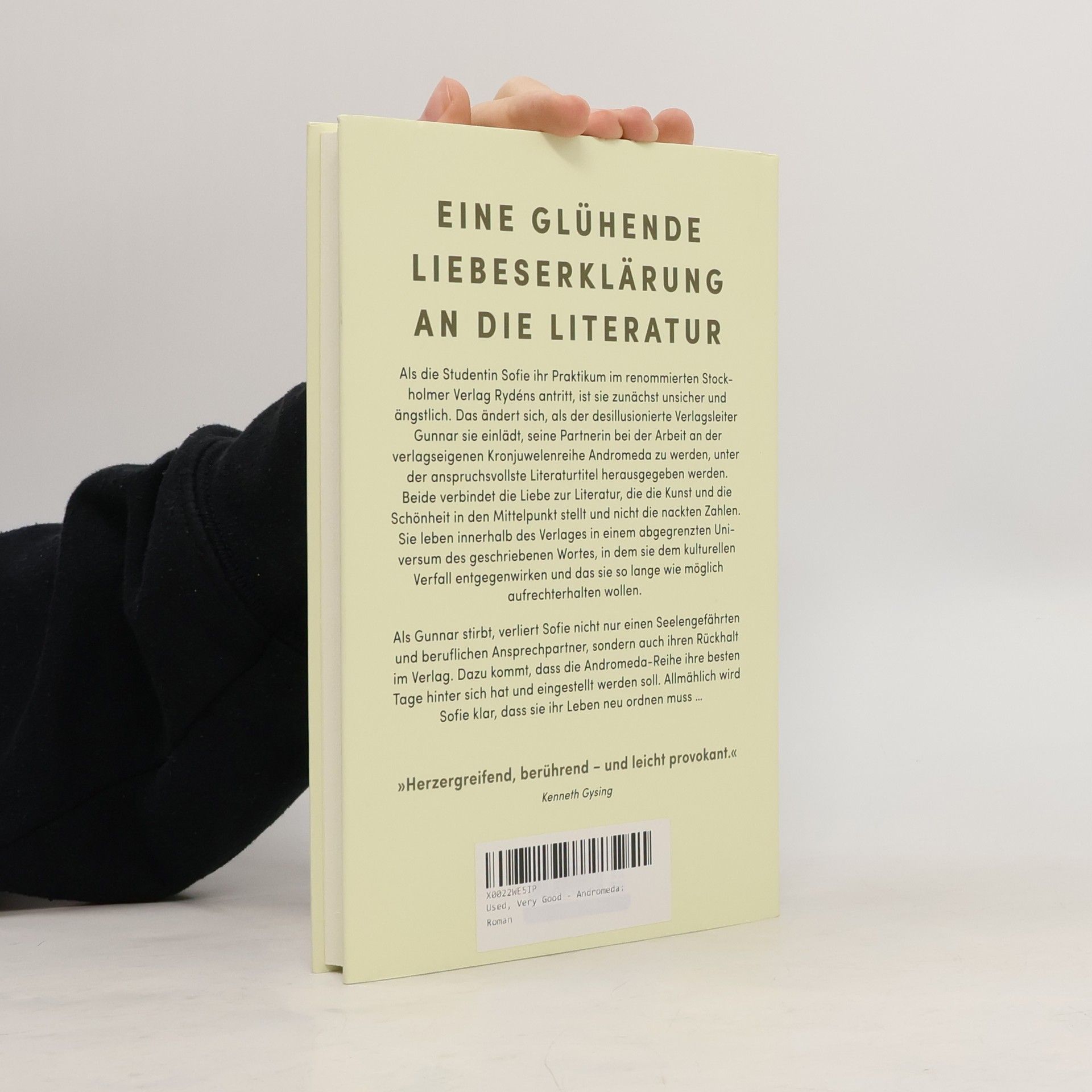 Die Studentin Sofie hat keine Worte für das Gefühl der Heimatlosigkeit, das sie empfindet. Als Praktikantin im renommierten Verlag Rydéns in einem Stockholm von vor zehn Jahren ist sie zunächst unsicher und ängstlich. Das ändert sich, als der desillusionierte Verlagsleiter Gunnar sie einlädt, Partnerin bei der Arbeit an der verlagseigenen Kronjuwelenreihe Andromeda zu werden, unter der anspruchsvollste Literaturtitel herausgegeben werden. Beide verbindet die Liebe zur Literatur, die die Kunst und die Schönheit dahinter sieht und nicht die nackten Zahlen. Sie leben in ihrer eigenen Welt, einem abgegrenzten Universum des geschriebenen Wortes, in dem sie dem kulturellen Verfall entgegenwirken wollen und das sie so lange wie möglich aufrechtzuerhalten versuchen. Für Sofie ist Gunnar der einzig wahre Mann an ihrer Seite. Insgeheim wünscht sie sich, dass er sich zu ihr bekennt und seine Frau verlässt. Als Gunnar stirbt, verliert sie nicht nur ihren Gefährten und Ansprechpartner, sondern auch ihren Rückhalt im Verlag. Dazu kommt, dass die Andromeda-Serie ihre besten Tage hinter sich hat und eingestellt werden soll. Allmählich wird Sofie klar, dass sie ihr Leben neu ordnen muss … Eindringlich schildert Therese Bohman die Geschichte zweier Menschen, vereint in ihrer Einsamkeit, die an Werten und Vorstellungen festhalten, die im modernen Literaturbetrieb von heute keinen Platz mehr haben.