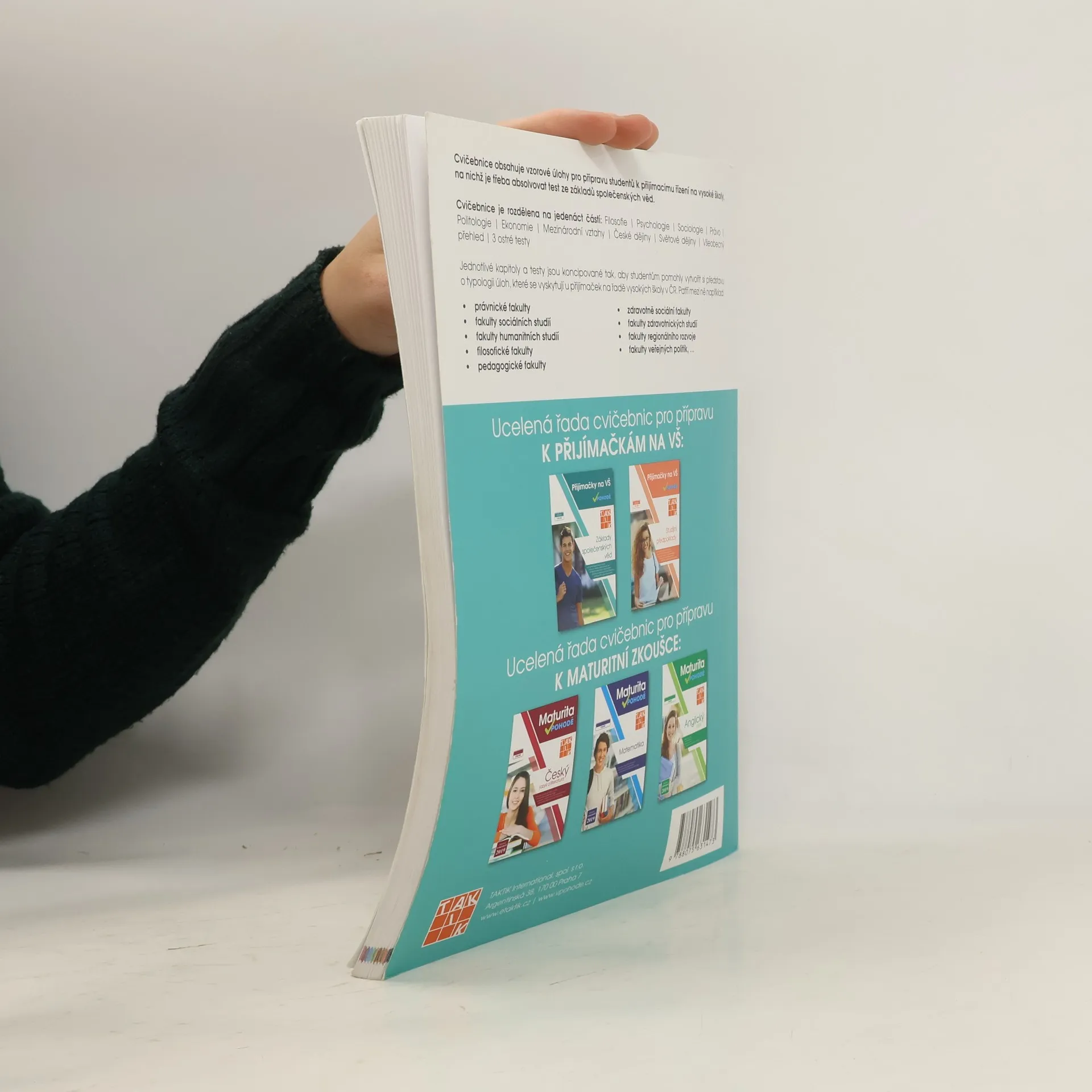 Cílem cvičebnic je poskytnout komplexní přípravu k přijímacímu řízení na vysoké školy, na nichž je třeba absolvovat test ze studijních předpokladů a základů společenských věd. Zpracováním různorodých typologií testových otázek a nejfrekventovanějších témat a oblastí z přijímacích řízení v ČR se podařilo žákům poskytnout kompletní podklady pro přípravu na testy ze studijních předpokladů a základů společenských věd na libovolnou vysokou školu v České republice. Cvičebnice obsahují vzorové úlohy pro přípravu studentů k přijímacímu řízení na vysoké školy, na nichž je třeba absolvovat test ze studijních předpokladů a základů společenských věd.