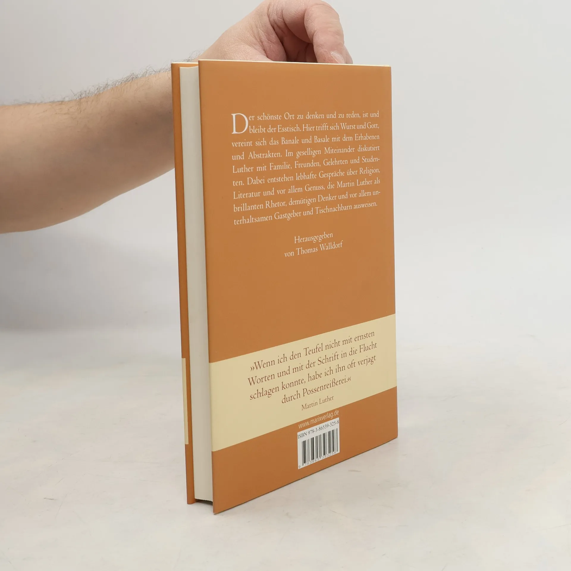 Der schönste Ort zu denken und zu reden, ist und bleibt der Esstisch. Hier trifft sich Wurst und Gott, vereint sich das Banale und Basale mit dem Erhabenen und Abstrakten. Im geselligen Miteinander diskutiert Luther mit Familie, Freunden, Gelehrten und Studenten. Dabei entstehen lebhafte Gespräche über Religion, Literatur und vor allem Genuss, die Martin Luther als brillanten Rhetor, demütigen Denker und vor allem unterhaltsamen Gastgeber und Tischnachbarn ausweisen. Herausgegeben von Thomas Walldorf Luthers Tischreden sind legendär: präzise und treffend, eine unerschöpfliche Quelle für Volkswitz und Lebensweisheit, für deftige Sprüche und gedankliche Tiefe. Mit ihnen können wir tief ins 16. Jahrhundert blicken, eine Zeit, die nicht immer unterhaltsam ablief. In ausgedehnten Tafelrunden bei üppiger Küche im Hause Luther in Wittenberg wurden Tipps für Haus und Hof gegeben, für die Ehe und Familie sowie im wahrsten Sinne über Gott und die Welt geplaudert. Kurzum: Es wurde über alles gesprochen, was das Herz bewegt.