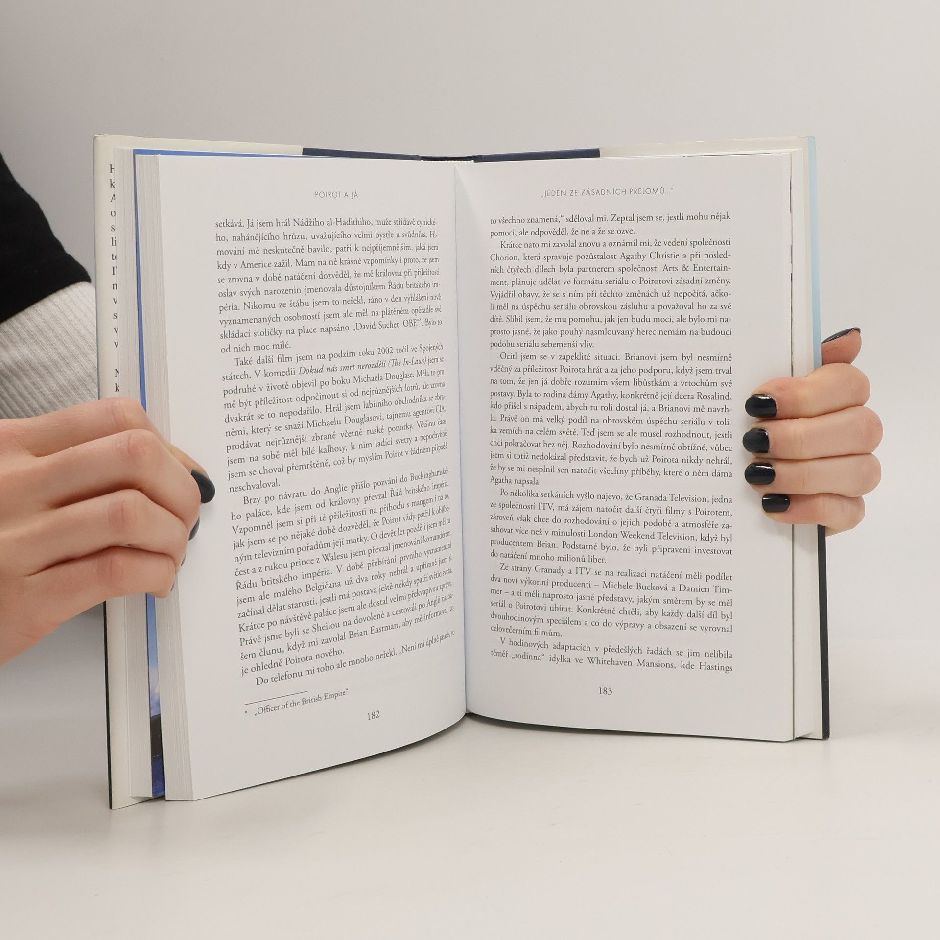 Hercule Poirot, puntičkář s typickým knírkem, je jednou z nejlepších postav Agathy Christie a ve světě patří mezi nejoblíbenější detektivy. Více než dvacet let je s tímto „malým Belgičanem“ neodmyslitelně spjat i David Suchet, jeho představitel v seriálu britské společnosti ITV. Když mu v roce 1988 roli nabídli, nikdo nebyl pravděpodobně překvapen více než Suchet sám. Nakonec ji však přijal, přečetl všechny Poirotovy příběhy a vymyslel řadu rysů chování, jimiž svoji postavu charakterizoval. Postupně si k Poirotovi vytvořil velmi úzký vztah a zamiloval si jej. Výsledkem je sedmdesát televizních adaptací všech příběhů, které Christie o Poirotovi napsala, včetně posledního dílu Opona, kde se Suchet s velkou lítostí musel s Poirotem rozloučit. V knize Poirot a já vzpomíná, jak kultovní seriál vznikal, a přemýšlí, co pro něj detektiv po všechny ty roky znamenal.
