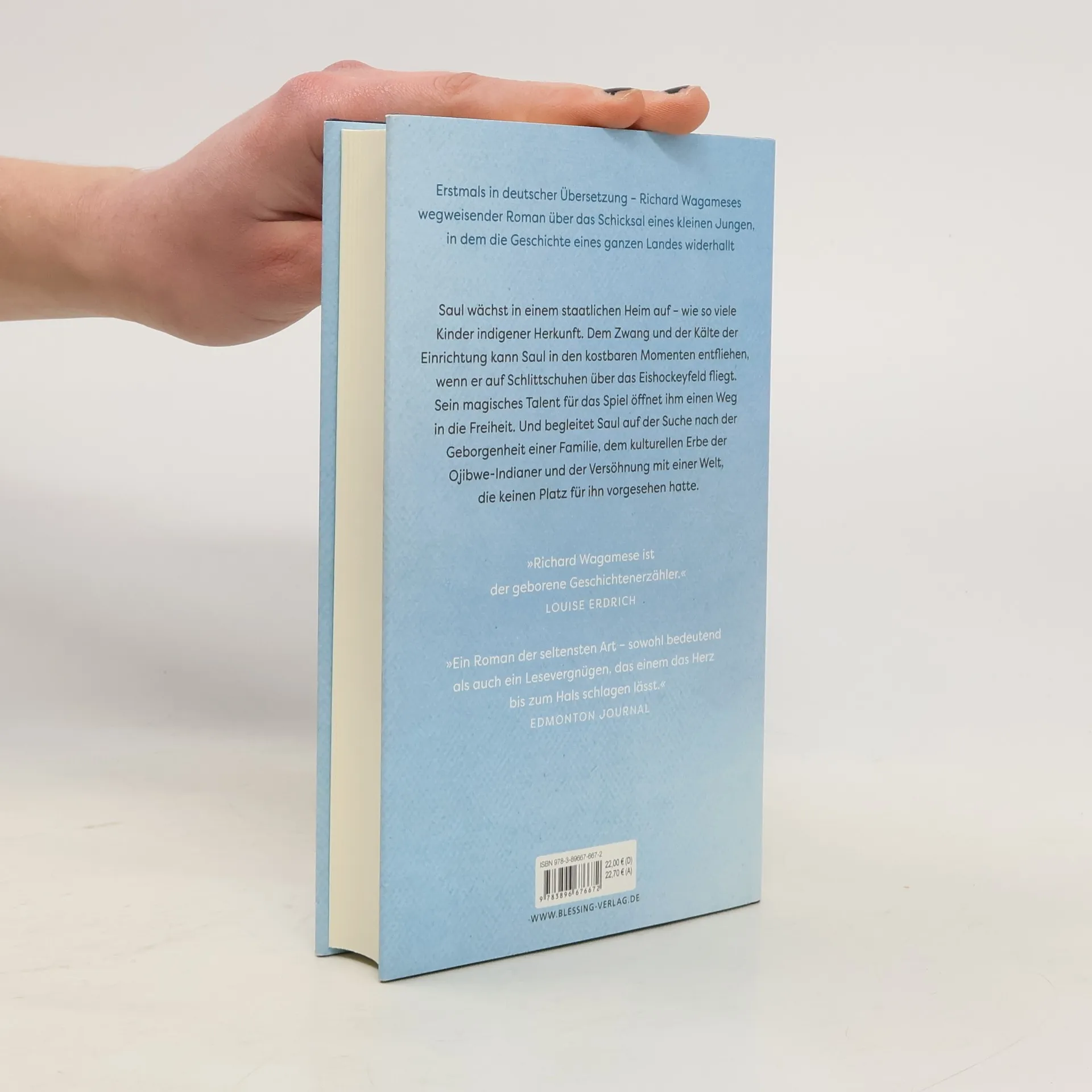 "Kanada in den 1960er-Jahren: Als kleiner Junge wird Saul von den Behörden seinen Eltern entrissen und auf eine Residential School geschickt, wo ausschließlich Kinder leben, die den kanadischen First Nations entstammen. Diese Schulen sollen die Kinder von ihren Eltern und von deren kulturellem Einfluss fernhalten. Als großes Eishockeytalent kann sich Saul etwas Anerkennung und Würde erkämpfen, doch selbst dieser urkanadische sportliche Erfolg bewahrt ihn nicht vor rassistischer Demütigung und kultureller Entwurzelung. Erst als er die Gabe der Vision, die schon sein Urgroßvater besaß, in sich entdeckt, und er sich auf den Weg in seine ursprüngliche Heimat macht, lernt Saul die allgegenwärtige Magie kennen, die auch sein Leben durchwirkt." --bookdepository.com