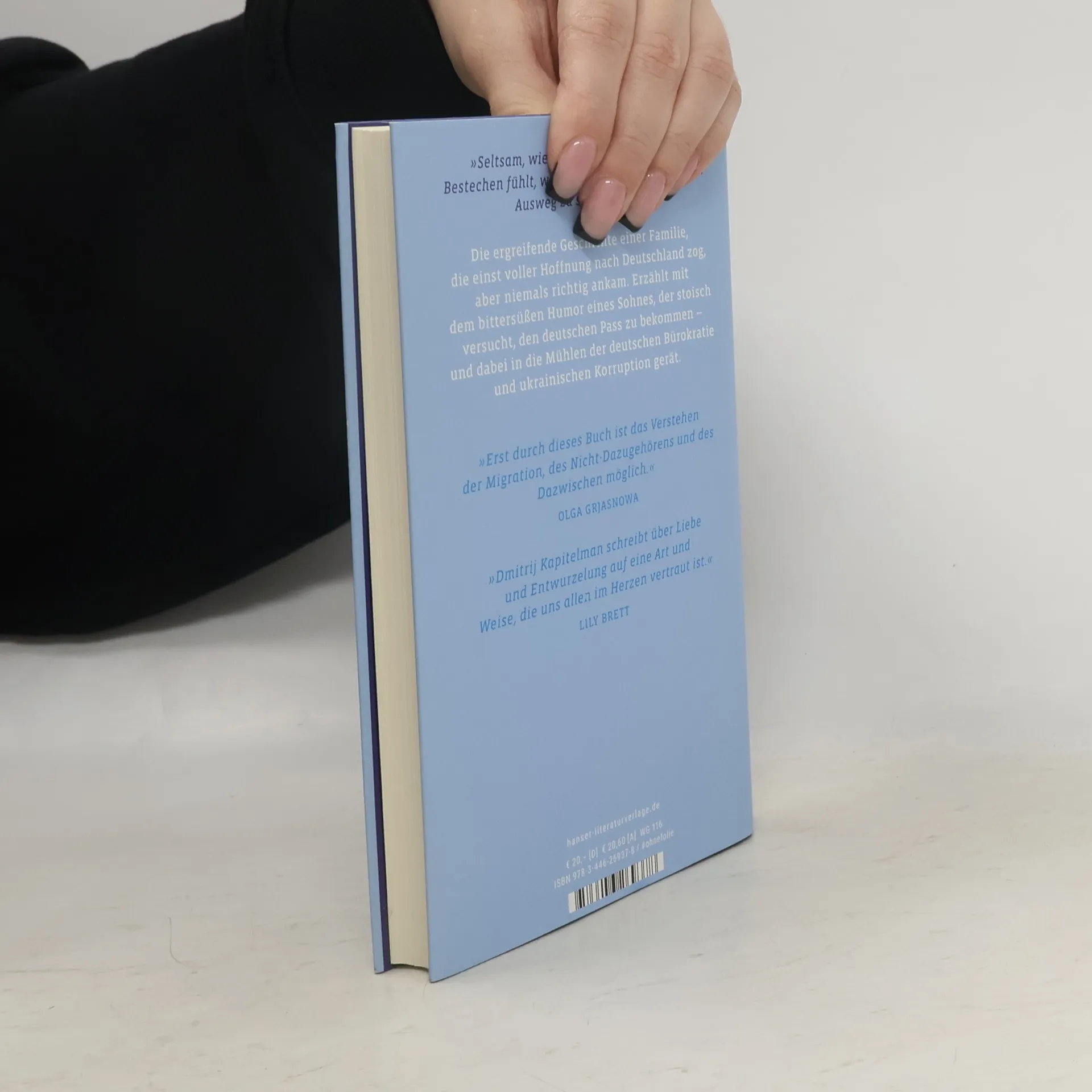 Dmitrij Kapitelman erzählt von einer Familie, die in die Fremde zog, um ein neues Leben zu beginnen, und am Ende ohne jede Heimat dasteht. „Erst durch dieses Buch ist das Verstehen der Migration, des Nicht-Dazugehörens und des Dazwischen möglich.“ Olga Grjasnowa„Eine Formalie in Kiew“ ist die Geschichte einer Familie, die einst voller Hoffnung in die Fremde zog, um ein neues Leben zu beginnen, und am Ende ohne jede Heimat dasteht. Erzählt mit dem bittersüßen Humor eines Sohnes, der stoisch versucht, Deutscher zu werden.Dmitrij Kapitelman kann besser sächseln als die Beamtin, bei der er den deutschen Pass beantragt. Nach 25 Jahren als Landsmann, dem Großteil seines Lebens. Aber der Bürokratie ist keine Formalie zu klein, wenn es um Einwanderer geht. Frau Kunze verlangt eine Apostille aus Kiew. Also reist er in seine Geburtsstadt, mit der ihn nichts mehr verbindet, außer Kindheitserinnerungen. Schön sind diese Erinnerungen, warten doch darin liebende, unfehlbare Eltern. Und schwer, denn gegenwärtig ist die Familie zerstritten.