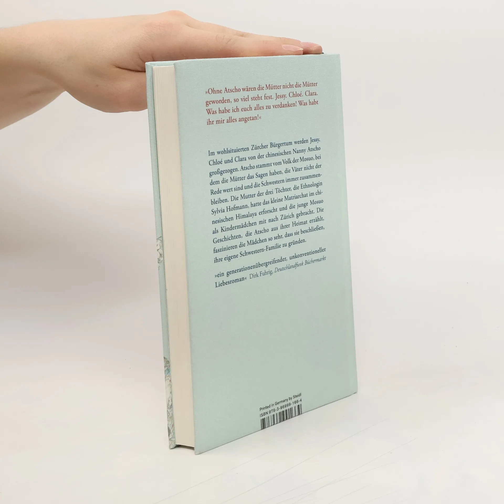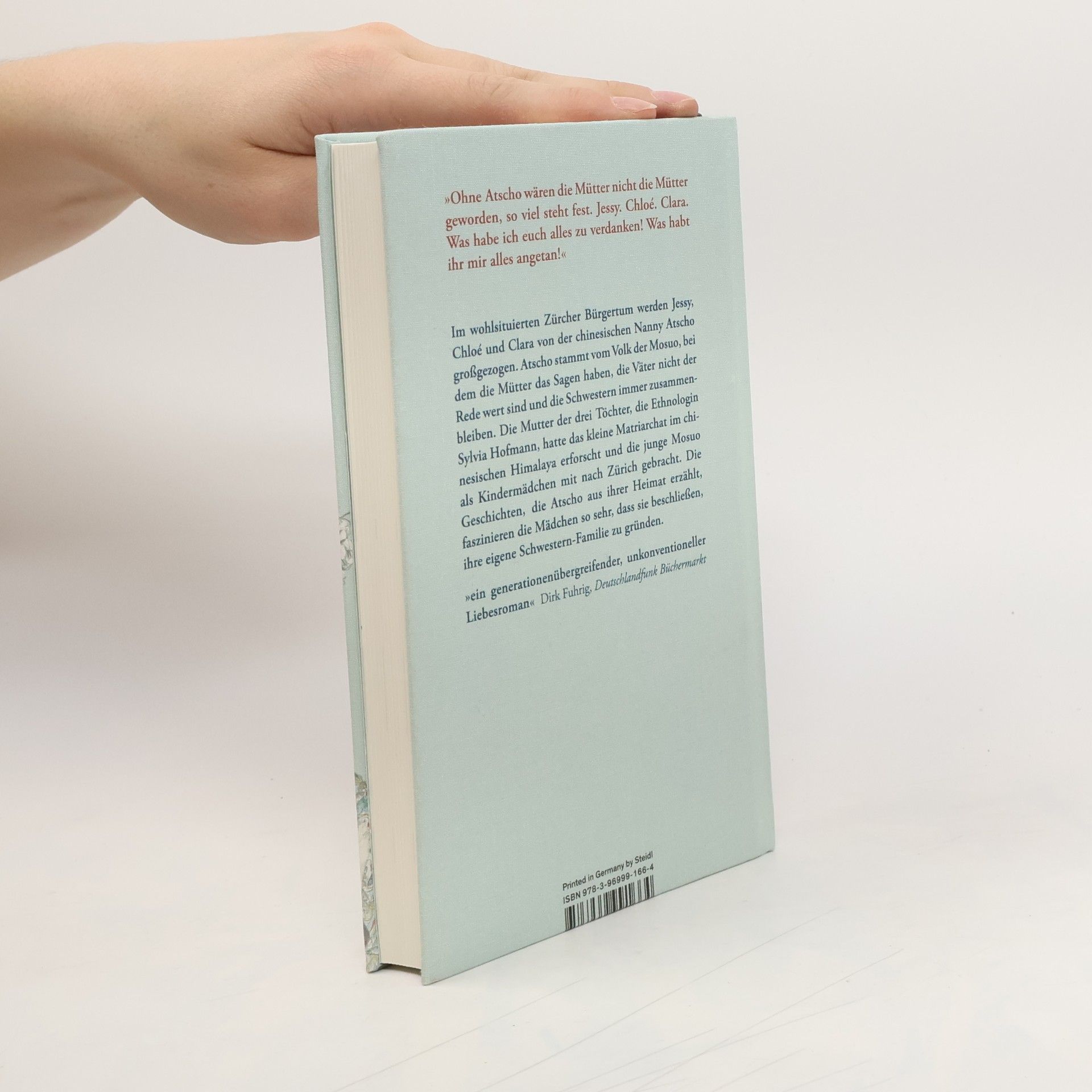 Im wohlsituierten Zürcher Bürgertum werden Jessy, Chloé und Clara von der chinesischen Nanny Atscho großgezogen. Atscho stammt vom Volk der Mosuo, bei dem die Mütter das Sagen haben, die Väter nicht der Rede wert sind und die Schwestern immer zusammenbleiben.Die Mutter der drei Töchter, die Ethnologin Sylvia Hofmann, hatte das kleine Matriarchat im chinesischen Himalaya erforscht und die junge Mosuo als Kindermädchen mit nach Zürich gebracht. Denn weder die häufig reisende Mutter noch der vielbeschäftigte Vater haben Zeit für die Kinder. Die Geschichten, die Atscho aus ihrer Heimat erzählt, und der unbedingte Zusammenhalt, der das Rückgrat der matriarchalen Familie der Mosuo bildet, faszinieren die Mädchen und sie beschließen, ihre eigene Schwestern-Familie zu gründen.Als aus den Töchtern Mütter werden, entspringen ihre sechs Kinder daher Gelegenheitsbekanntschaften nach dem Vorbild der Besuchsehe der Mosuo. Drei Mütter, eine Atscho, keine Väter – eine Oase der Frauen inmitten derSchweizer Bourgoisie. Als jedoch der wahre Grund für Atschos Emigration ans Licht kommt und der älteste Sohn Anton gegen die unkonventionelle Lebensform der Mütter immer stärker aufbegehrt, droht die Familie zu zerbrechen.