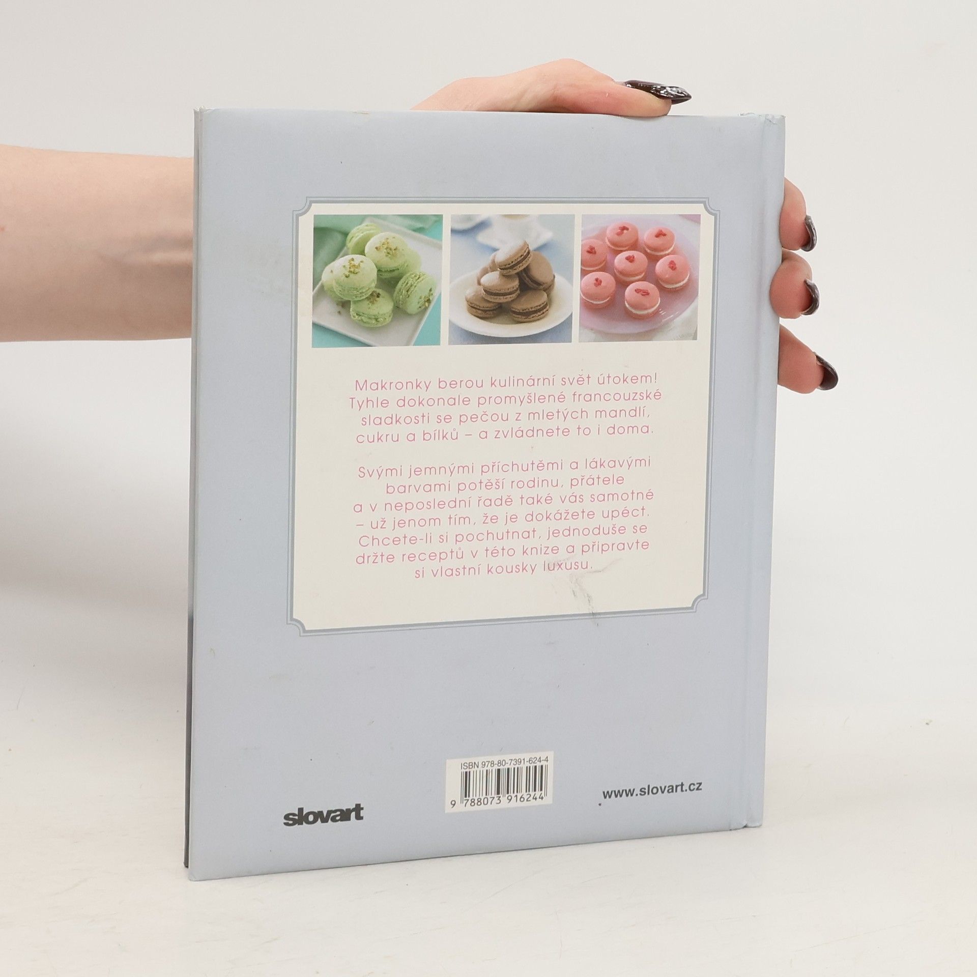 Francouzské macarons čili makronky nebo i makaronky jsou drobné mandlové „laskonky" slepované ochucenou náplní. Typické jsou pro ně hladce vypouklé vršky a nádherně vláčné středy. Přestože dnes patří k chloubám francouzských pekařství, jde pravděpodobně o italský vynález. Makronky v současné době berou kulinární svět útokem! Tyhle dokonalé sladkosti se pečou z mletých mandlí, cukru a bílků. Svými jemnými příchutěmi a barvami potěší rodinu, přátele i vás samotné - už jenom tím, že je dokážete upéct. Chcete-li si pochutnat, jednoduše se držte receptů v této knize a připravte si vlastní kousky luxusu. Makronky jsou skvělé jako sladká tečka po obědě, ke kávě nebo čaji i jako výslužka ze svatby či dárek pro mlsné jazýčky. Přeloženo z angličtiny.