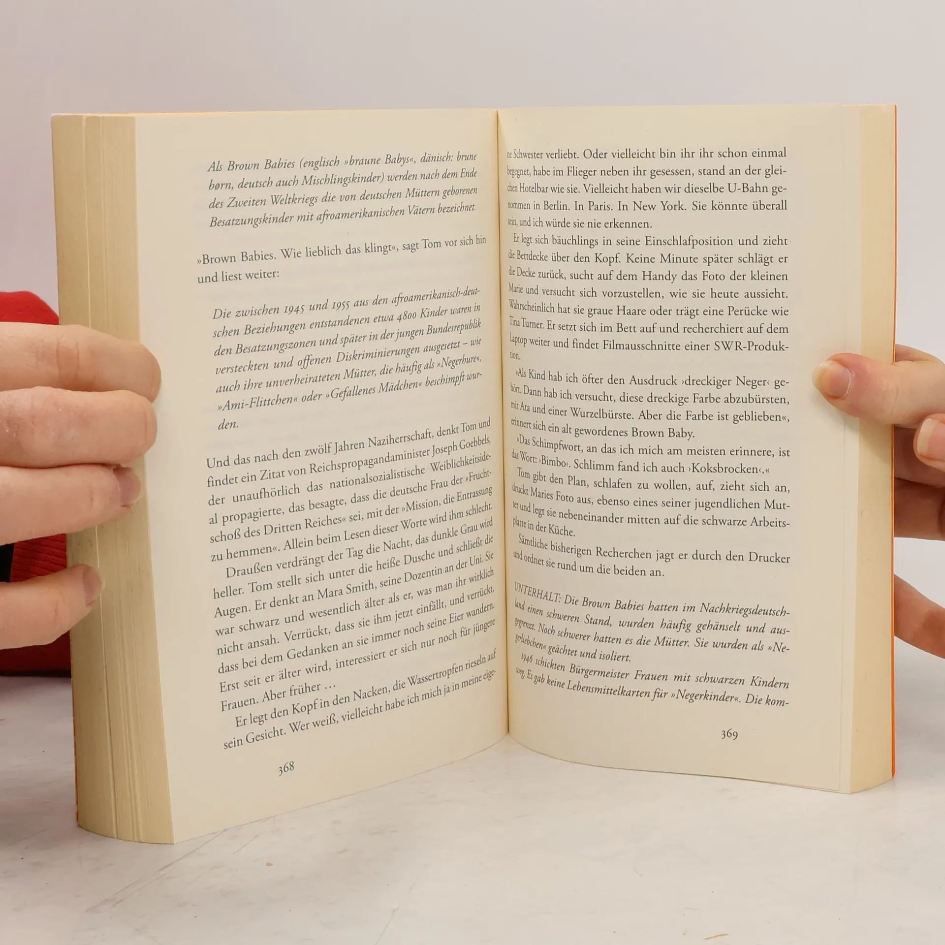 Eine große Liebe in düsteren Zeiten ist ein bemerkenswertes Debüt und ein generationsübergreifender Familienroman. Der Kölner Nachrichtenmoderator Tom Monderath ist besorgt um seine 84-jährige Mutter Greta, die zunehmend vergesslich wird. Als die Diagnose Demenz im Raum steht, ist Tom erschüttert. Doch die Krankheit wird zu einem Geschenk, als Greta beginnt, von ihrem Leben zu erzählen – von ihrer Kindheit in Ostpreußen, ihren geliebten Großeltern, der Flucht vor den russischen Soldaten im Winter und ihrer Zeit im besetzten Heidelberg. Als Tom jedoch ein Foto eines kleinen Mädchens mit dunkler Haut entdeckt, verstummt Greta. Dies führt Tom dazu, sich intensiver mit der Vergangenheit seiner Mutter auseinanderzusetzen, um ihre Traurigkeit zu verstehen und sein eigenes Glück zu finden. Nichts bleibt für immer vergessen – die Autorin schreibt hochemotional, klug und einfühlsam. Der Roman thematisiert wichtige, oft vergessene Aspekte der Geschichte und reflektiert über den langen Weg aus einem von Rassismus und Bigotterie geprägten Nachkriegsdeutschland.