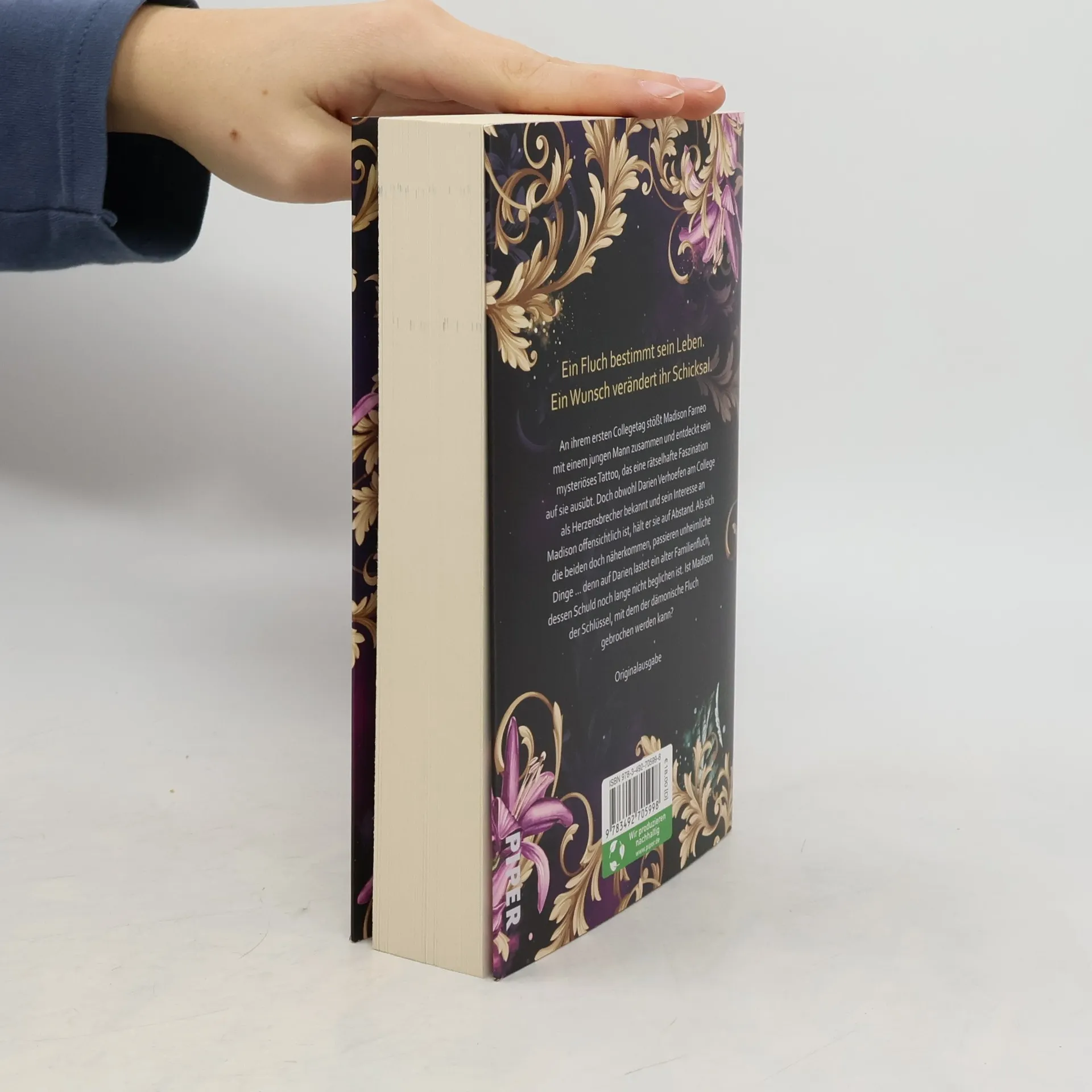 An ihrem ersten Collegetag stößt Madison Farneo mit einem jungen Mann zusammen und entdeckt sein mysteriöses Tattoo, um das sich die Gerüchte ranken. Und Darien Verhoefen gibt noch ganz andere Rätsel auf: Obwohl er am College als Herzensbrecher bekannt und sein Interesse an Madison offensichtlich ist, hält er sie auf Abstand. Als sich die beiden doch näherkommen, passieren unheimliche Dinge ... denn auf Darien lastet ein alter Familienfluch, dessen Schuld noch lange nicht beglichen ist. Ist Madisons Liebe der Schlüssel, mit dem der dämonische Fluch gebrochen werden kann?