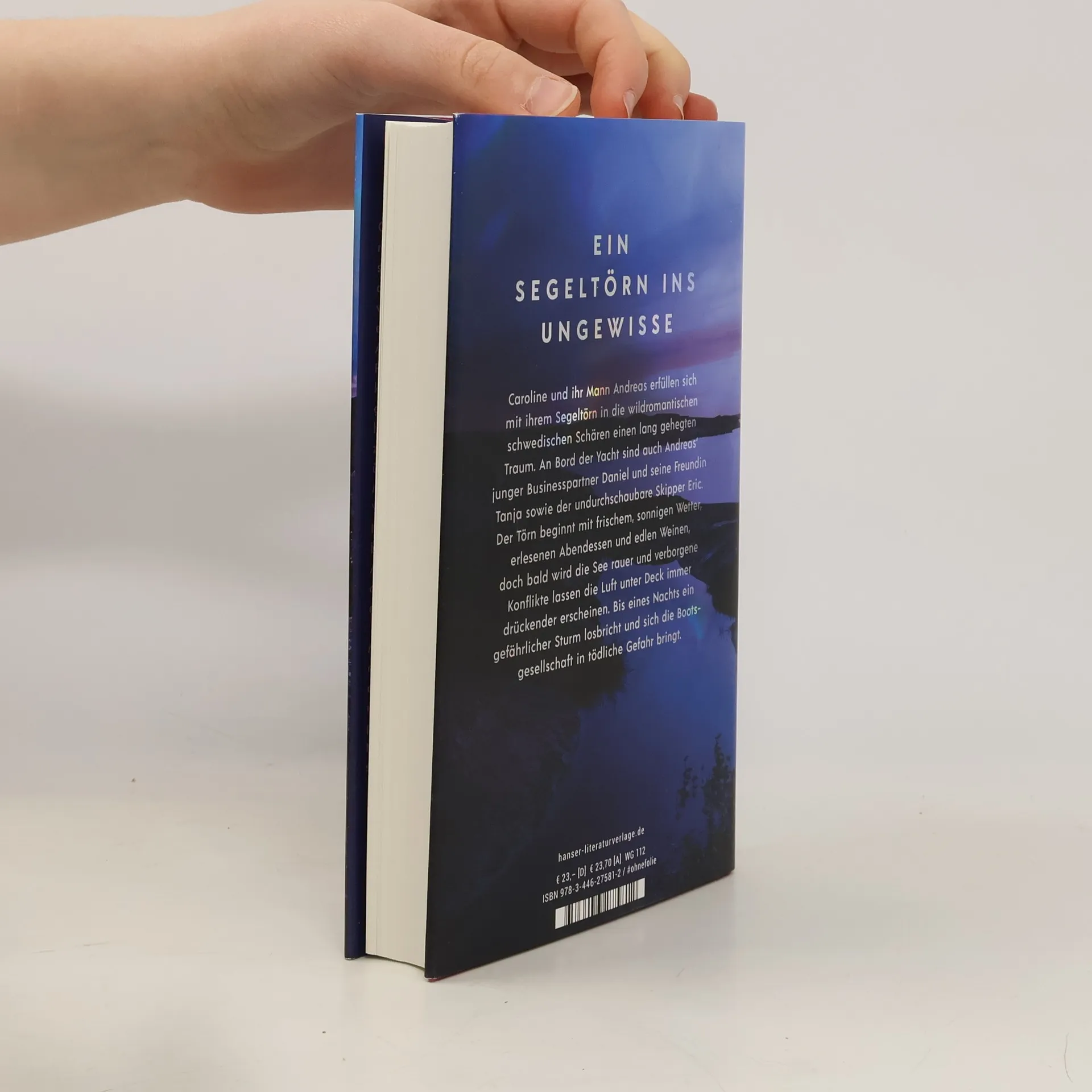 Ein Segeltörn ins Ungewisse – nach „Unter Wasser Nacht“ entführt der neue Roman von Bestsellerautorin Kristina Hauff in die wildromantischen schwedischen Schären Ein Segeltörn in die wildromantischen schwedischen Schären – Caroline und ihr Mann Andreas erfüllen sich damit einen lang gehegten Traum. Auch Andreas’ junger Anwaltskollege und seine Freundin sind an Bord sowie der undurchschaubare, faszinierende Skipper Eric. Der Urlaub beginnt mit frischem sonnigen Wetter und erlesenen Abendessen, doch bald wird die See rauer und verborgene Konflikte lassen die Luft unter Deck immer drückender erscheinen. Bis eines Nachts ein gefährlicher Sturm losbricht. Mit spannenden Wendungen und atmosphärischen Naturschilderungen erzählt Kristina Hauff von dem, was unter der Oberfläche eines scheinbar perfekten Lebens brodelt. Und von einer Nacht, deren tödliche Bedrohung folgenschwere Wahrheiten ans Licht bringt.