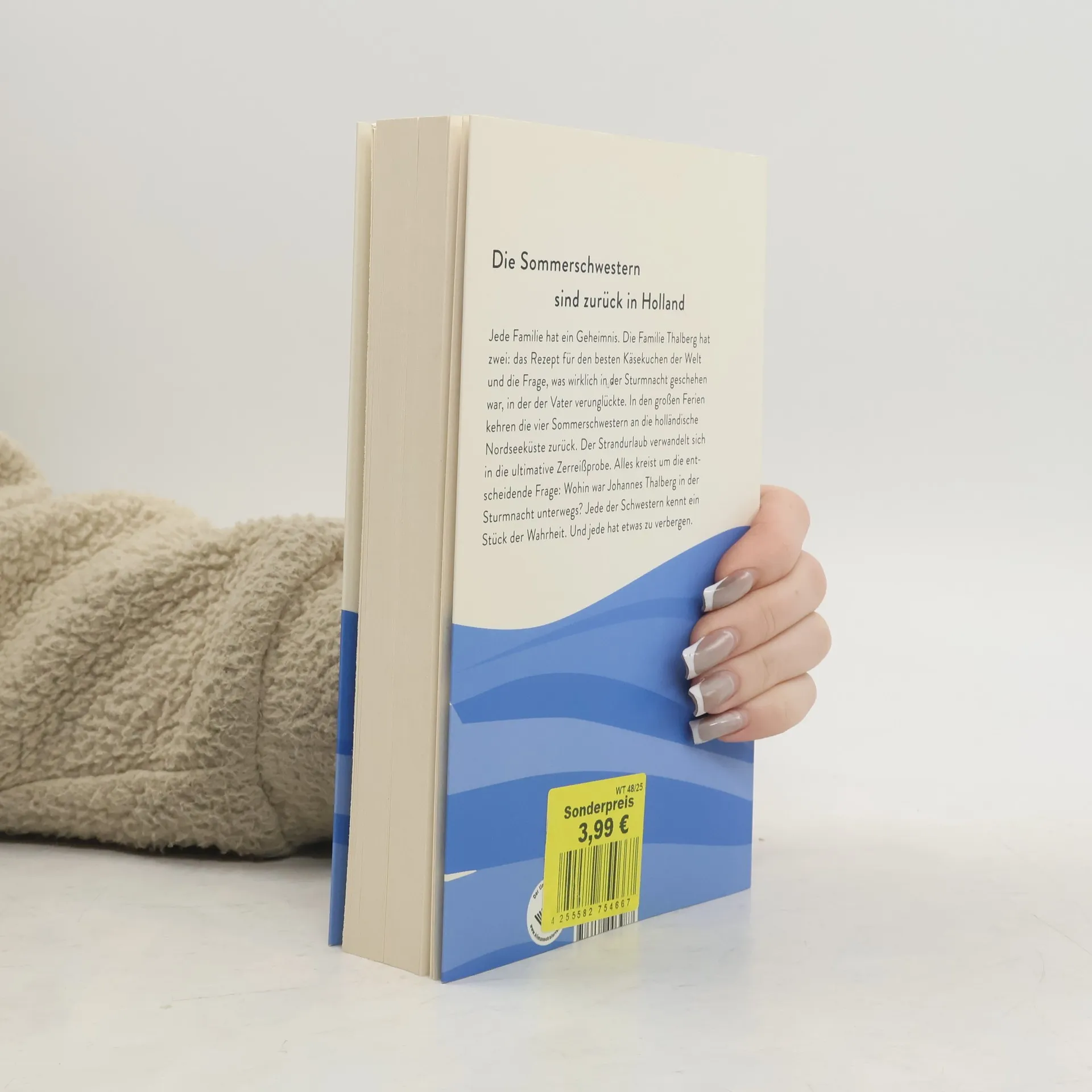Im zweiten Band der Sommerschwestern-Romane von Monika Peetz kehren die vier Schwestern an ihren Ferienort Bergen an der holländischen Nordseeküste zurück, um das Familiengeheimnis um den Tod ihres Vaters aufzudecken. Eine aufregende Suche nach der Wahrheit vor sommerlicher Urlaubskulisse. Jede Familie hat ein Geheimnis. Die Familie Thalberg hatte zwei. Das Rezept für den besten Käsekuchen der Welt und die Frage, was wirklich in der Sturmnacht geschehen war, in der der Vater verunglückte. In den großen Ferien kehren die vier Sommerschwestern an die holländische Nordseeküste zurück. Der Strandurlaub verwandelt sich in die ultimative Zerreißprobe. Ein mysteriöser Verfolger lässt die Konflikte zwischen den vier Frauen eskalieren. Alles kreist um die entscheidende Frage: Wohin war Johannes Thalberg in der Sturmnacht unterwegs? Jede der Schwestern kennt ein Stück der Wahrheit. Und jede hat etwas zu verbergen.
