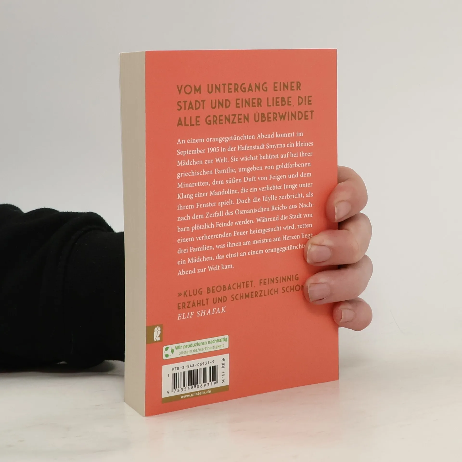 »Klug beobachtet, feinsinnig erzählt und schmerzlich schön.« Elif Shafak An einem orangegetünchten Abend kommt im September 1905 in der Hafenstadt Smyrna ein kleines Mädchen zur Welt. Sie wächst behütet auf bei ihrer griechischen Familie, umgeben von goldfarbenen Minaretten, dem süßen Duft von Feigen und dem Klang einer Mandoline, die ein verliebter Junge unter ihrem Fenster spielt. Doch die Idylle zerbricht jäh, als nach dem Zerfall des Osmanischen Reichs aus Nachbarn plötzlich Feinde werden. Während die Stadt von einem verheerenden Feuer heimgesucht wird, retten drei Familien, eine griechische, eine türkische und eine levantinische, was ihnen am meisten am Herzen liegt: ein Mädchen, das einst an einem orangegetünchten Abend zur Welt kam. Die unvergessliche Geschichte einer mutigen Frau, deren pralles Leben geprägt ist von ihrer Liebe zur Heimat. Einer Frau, die die einmalige Schönheit und den tragischen Untergang ihrer Stadt am eigenen Leib erfährt und ihr leidenschaftliches Vermächtnis mit uns teilt.