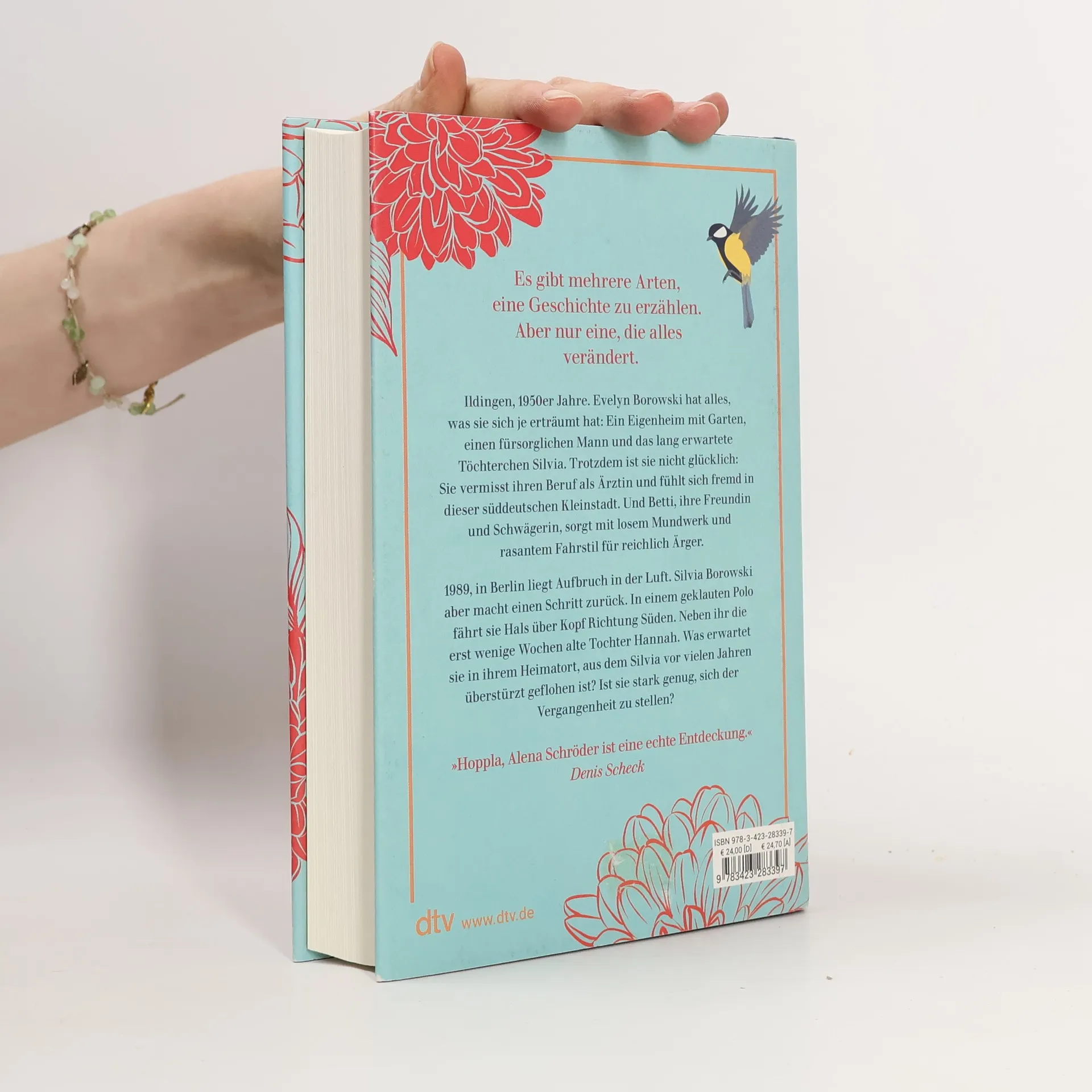 Es gibt mehrere Arten, eine Geschichte zu erzählen. Aber nur eine, die alles verändert. Ildingen, 1950er Jahre: Evelyn Borowski hat ein Eigenheim, einen fürsorglichen Mann und die lang ersehnte Tochter Silvia, doch sie ist unglücklich und vermisst ihren Beruf als Ärztin. Ihre Freundin und Schwägerin Betti, unverheiratet und um die Eltern kümmernd, sorgt mit ihrem unkonventionellen Wesen für Aufregung. Der Familienroman spannt einen Bogen von der Nachkriegszeit bis zur Wende. 1989 in Berlin liegt Aufbruch in der Luft, während Silvia Borowski Hals über Kopf mit ihrer wenigen Wochen alten Tochter Hannah in einem gestohlenen Polo in den Süden fährt. Was erwartet sie in ihrem Heimatort, aus dem sie einst flüchtete? Ist sie stark genug, sich ihrer Vergangenheit zu stellen? Die berührende Mutter-Tochter-Geschichte thematisiert jahrzehntelanges Schweigen und den Mut, es zu brechen. Am Familiengrab der Borowskis wird Silvia bewusst, dass ein Stein fehlt, der eine nie gestellte Frage beantworten könnte. Alena Schröder zeigt, dass sowohl Aufbruch als auch Heimkehr Mut erfordern und erzählt, was in ihrem Bestseller im Dunkeln blieb. Die dichte, emotionale Geschichte regt zum Nachdenken an und beleuchtet, wie Frauen aller Generationen mit dem Muttersein hadern.