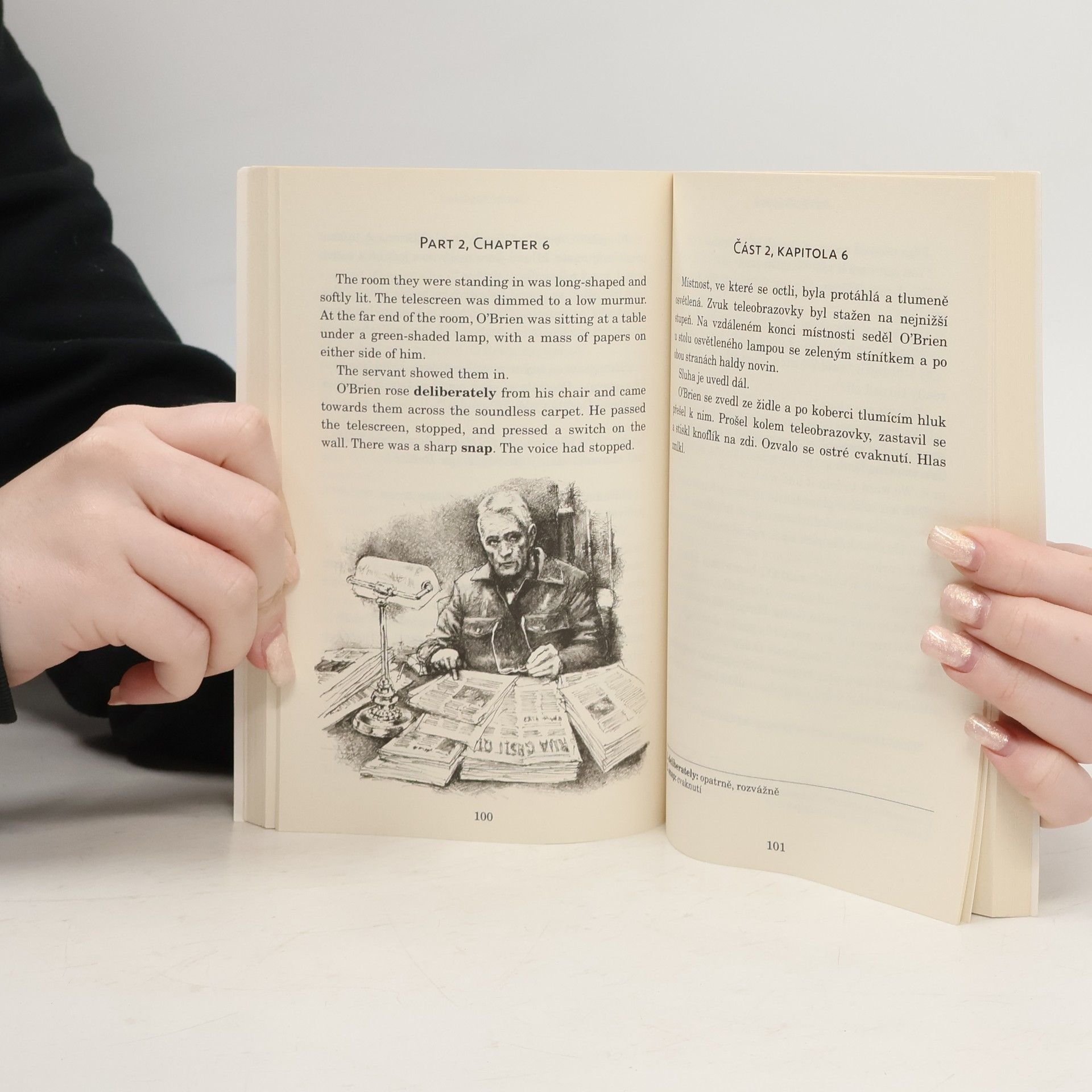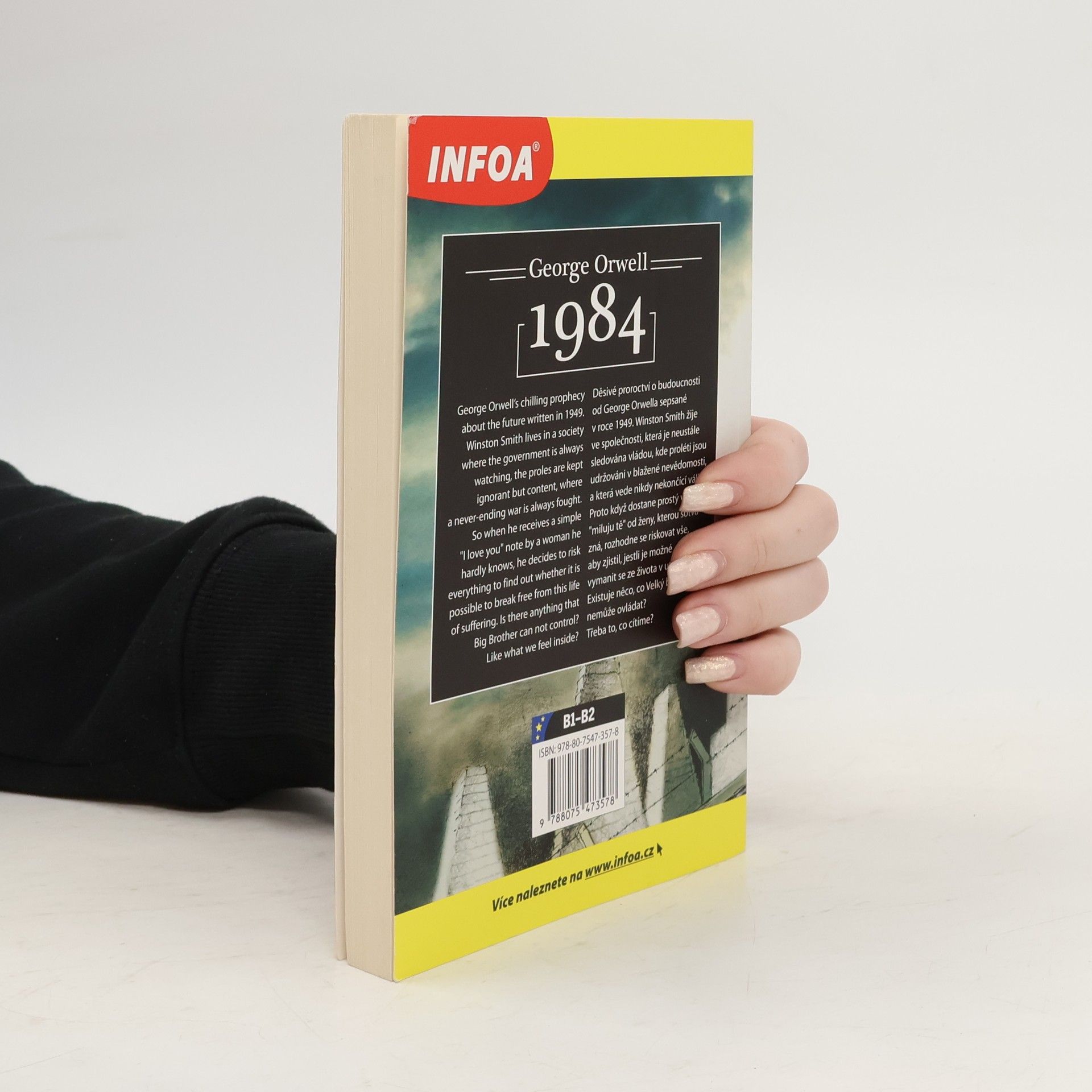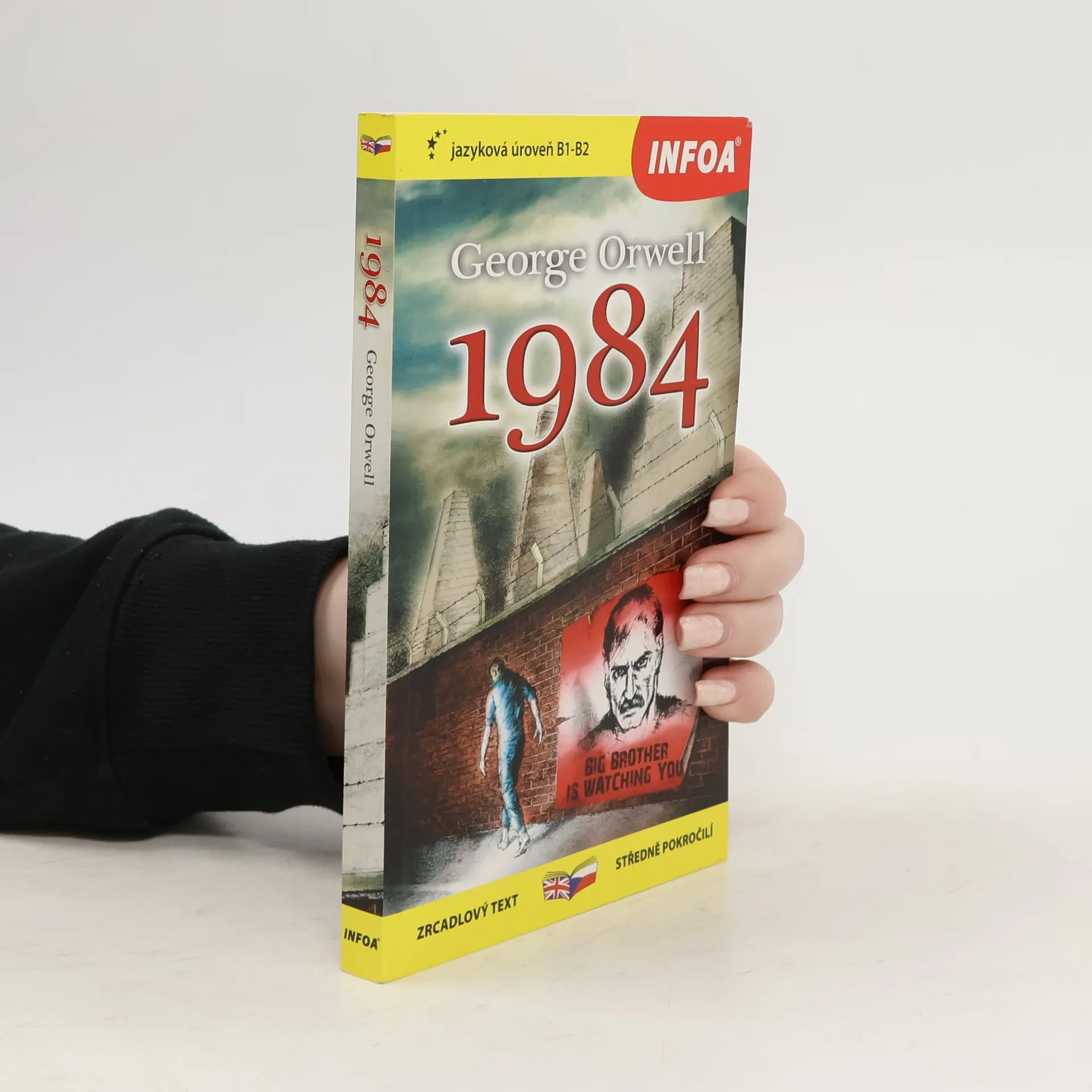 Zrcadlová edice kultovní knihy 1984 – na sudých stranách anglický originál, na stranách lichých český překlad. Zjednodušené, ilustrované převyprávění Nicka Gerrarda vhodné pro studenty anglického jazyka s jazykovou úrovní B1–B2 (středně pokročilí). Děsivé proroctví o budoucnosti od George Orwella sepsané v roce 1984. Winston Smith žije ve společnosti, která je neustále sledována vládou, kde proléti jsou udržováni v blažené nevědomosti, a která vede nikdy nekončící válku. Proto když dostane prostý vzkaz miluju tě od ženy, kterou sotva zná, rozhodne se riskovat vše, aby zjistil, jestli je možné vymanit se ze života v utrpení. Existuje něco, co Velký bratr nemůže ovládat? Třeba to, co cítíme?