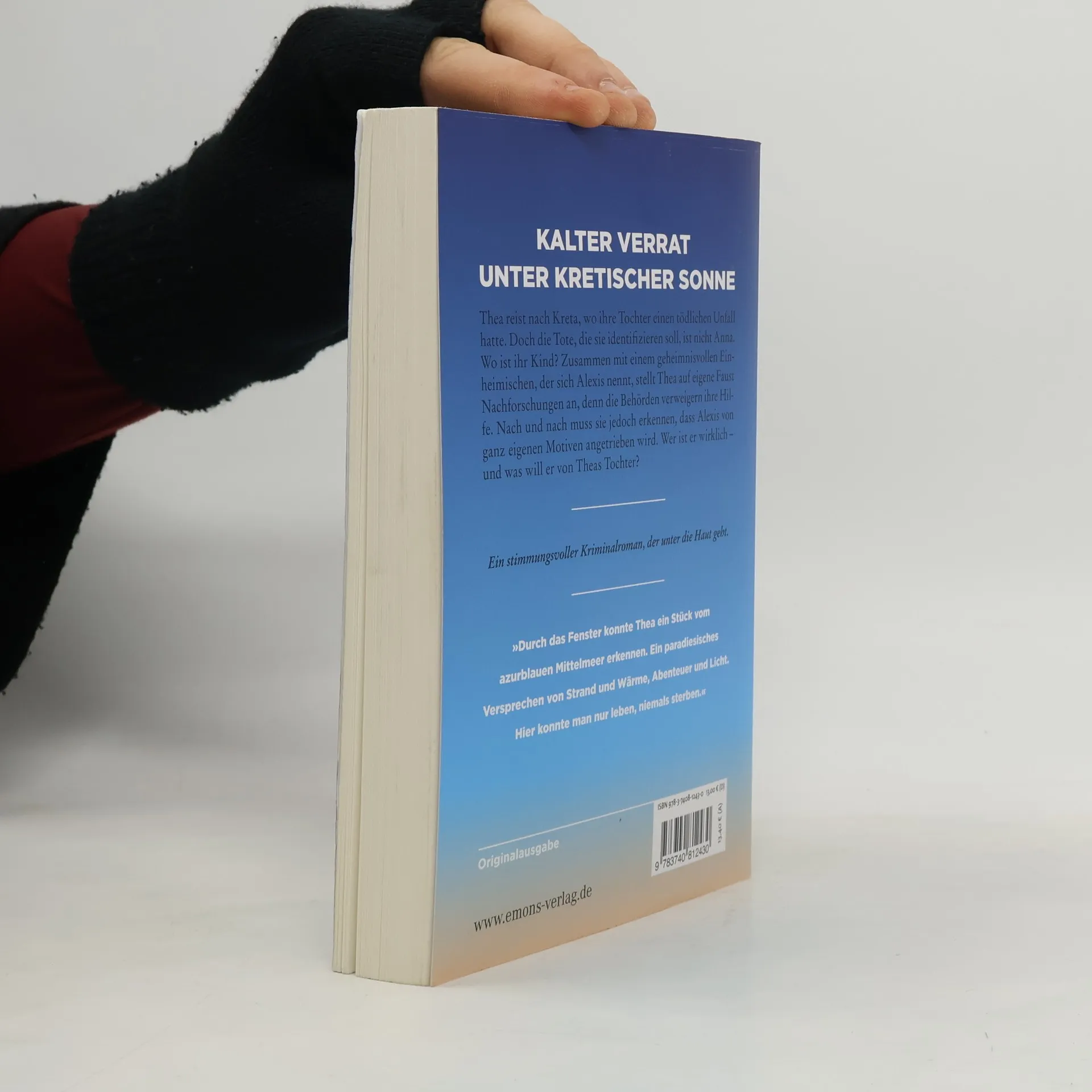 Die dunkle Seite Kretas, eindrücklich in rasante Bilder gesetzt. Thea reist nach Kreta, wo ihre Tochter einen tödlichen Unfall hatte. Doch die Tote, die sie identifizieren soll, ist nicht Anna. Wo ist ihr Kind? Zusammen mit einem geheimnisvollen Einheimischen, der sich Alexis nennt, stellt Thea auf eigene Faust Nachforschungen an, denn die Behörden verweigern ihre Hilfe. Nach und nach muss sie jedoch erkennen, dass Alexis von ganz eigenen Motiven angetrieben wird. Wer ist er wirklich – und was will er von Theas Tochter?