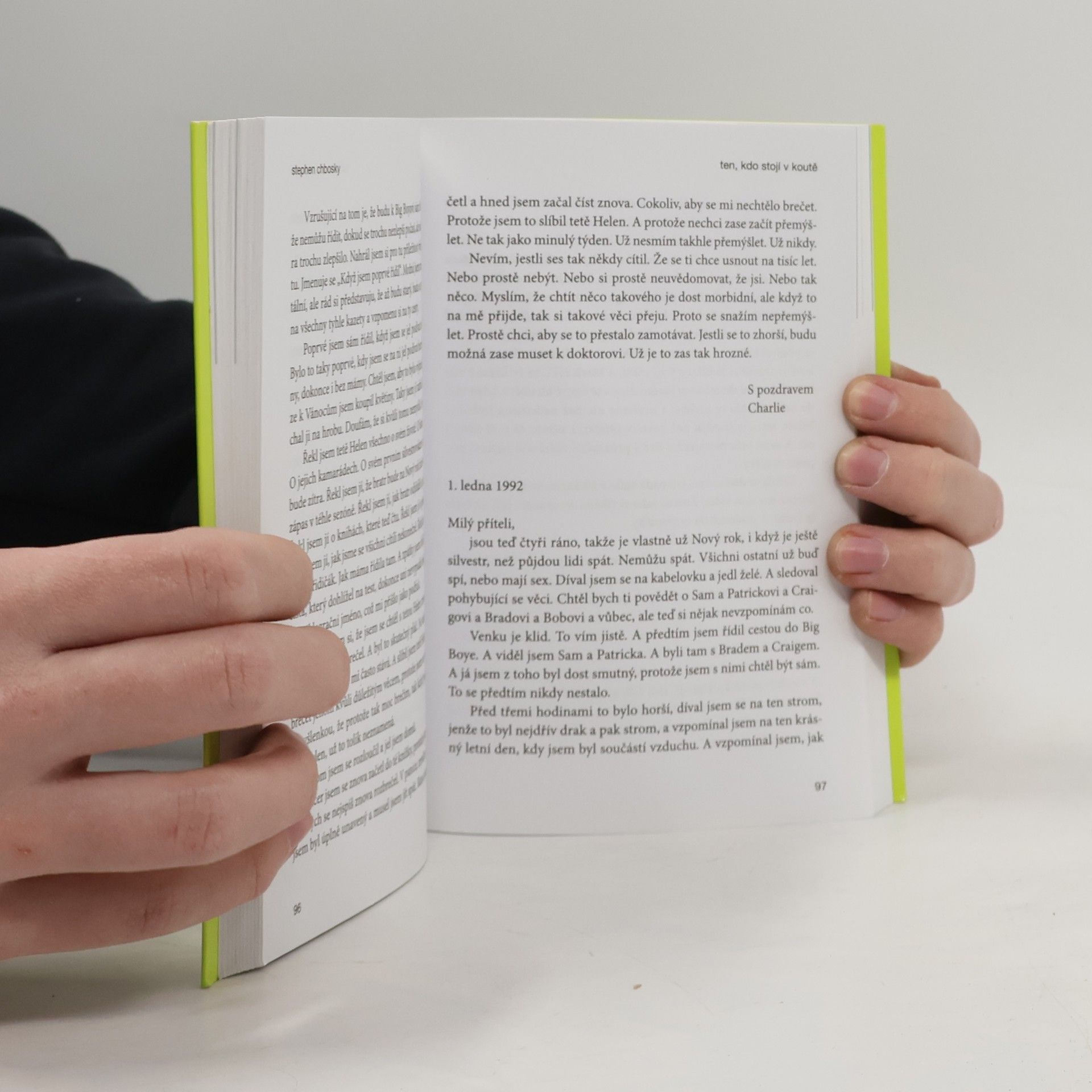 Když člověk stojí v koutě, může si všimnout spousty úžasných věcí. Ale pak přijde chvíle, kdy je třeba vykročit na parket a začít opravdu žít. Strhujícímu románu Stephena Chboskeho o dilematu mezi nečinností a touhou se dostalo nadšeného přijetí, vyvolal polemiku a získal miliony oddaných čtenářů. Příběh o dospívání na střední škole, který Charlie vypráví v dopisech, je otevřenější a důvěrnější než leckterý deník, zároveň vtipný i sžíravý. Nevíme, kde Charlie bydlí, ani komu píše - máme jen slova, o která se rozhodl podělit. Zmítán touhou žít svůj vlastní život i touhou vymanit se z role, která mu připadla, prozkoumává dosud neznámé území. Před ním se otvírá svět prvních lásek, rodinných dramat i nových přátelství. Svět sexu, drog a Rocky Horror Picture Show, kde klíčem ke štěstí může být například ta správná píseň, díky níž se můžete řítit tunelem a cítit se nekonečně. V Charliem se Chboskemu podařilo stvořit vypravěče, který vás uhrane a přenese zpět do divokých a intenzivně prožívaných dní na prahu dospělosti, kdy se život podobal jízdě na horské dráze. 2. vydání
