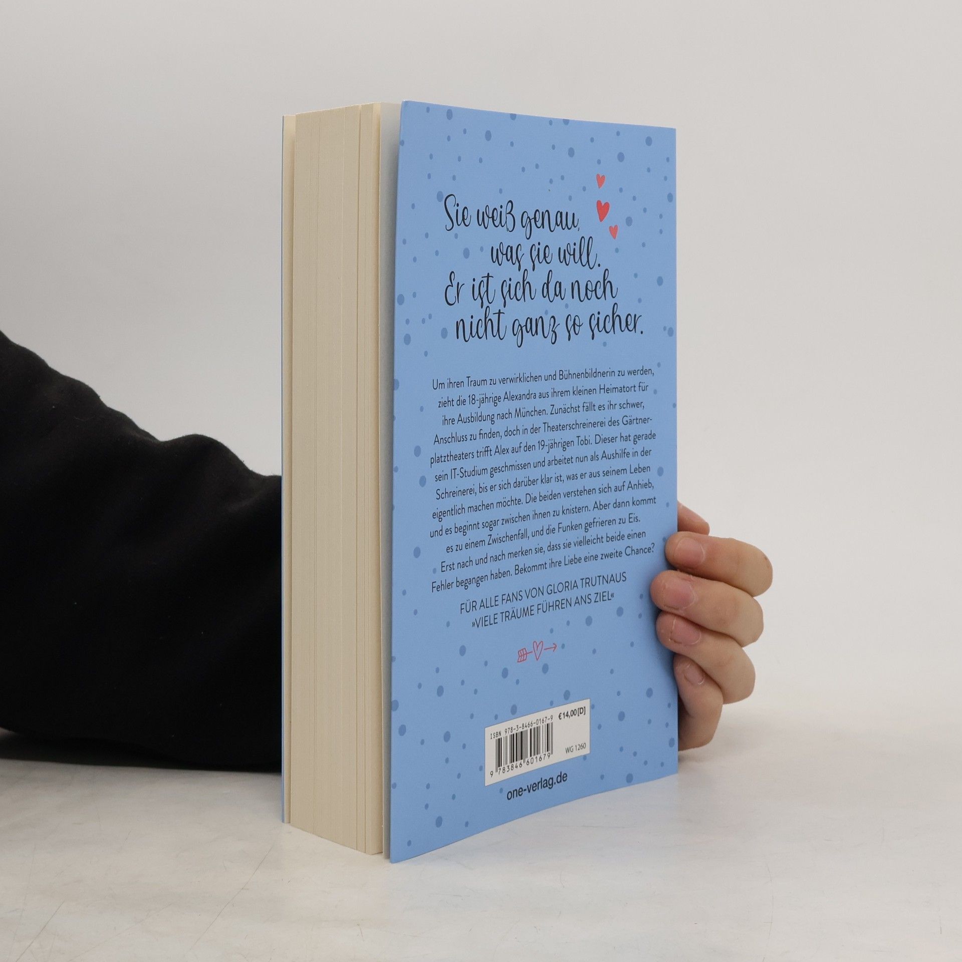 Ausbildung oder Studium? Welches ist der richtige Weg? (ab 14 Jahren) Um ihren Traum zu verwirklichen und Bühnenbildnerin zu werden, zieht die 18-jährige Alexandra aus ihrem kleinen Heimatort für ihre Ausbildung nach München. Zunächst fällt es ihr schwer, Anschluss zu finden, doch in der Theaterschreinerei des Gärtnerplatztheaters trifft Alex auf den 19-jährigen Tobi, der gerade sein IT-Studium geschmissen hat und dort nun als Aushilfe arbeitet. Die beiden verstehen sich auf Anhieb, und es beginnt sogar zwischen ihnen zu knistern. Aber dann kommt es zu einem Zwischenfall, und die Funken gefrieren zu Eis. Erst nach und nach merken sie, dass sie vielleicht beide einen Fehler begangen haben. Bekommt ihre Liebe eine zweite Chance? Spannendes Setting: Protagonistin Alex muss sich in einem männerdominierten Arbeitsumfeld zurechtfinden Für alles Fans von VIELE TRÄUME FÜHREN ANS ZIEL. Beide Bände sind unabhängig voneinander lesbar, spielen aber im selben Freund*innenkreis. Die Autorin auf Instagram & TikTok: @gloriatrutnau