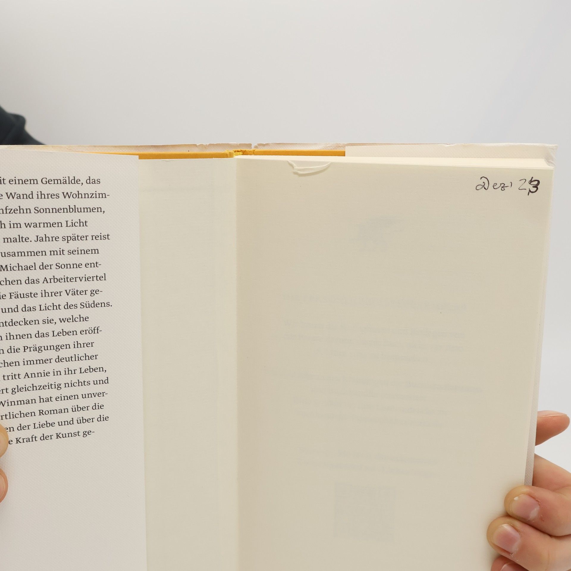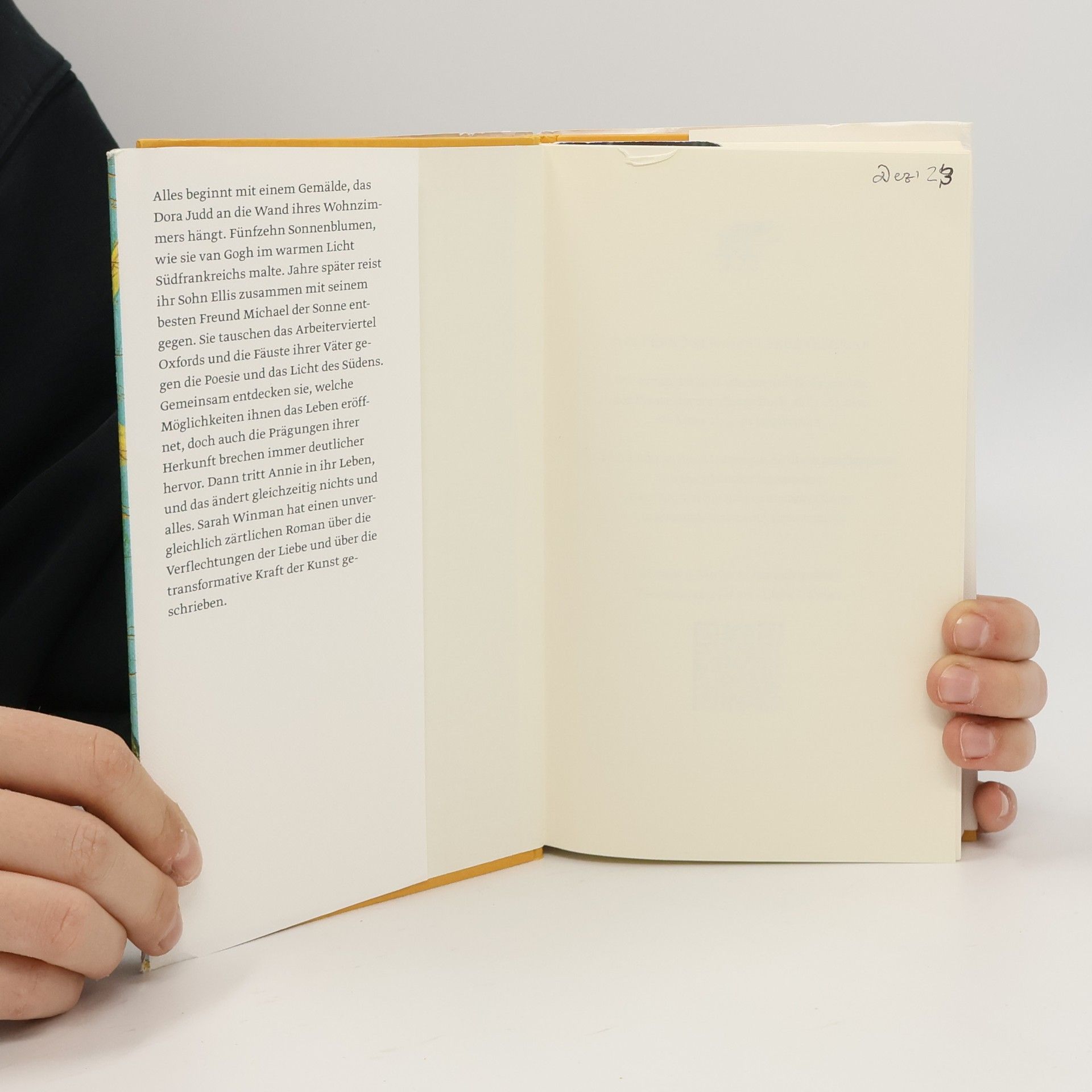 »Unbedingt lesen « Christine Westermann Alles beginnt mit einem Gemälde, das Dora Judd an die Wand ihres Wohnzimmers hängt. Fünfzehn Sonnenblumen, wie sie van Gogh im warmen Licht Südfrankreichs malte. Jahre später reist ihr Sohn Ellis zusammen mit seinem besten Freund Michael der Sonne entgegen. Sie tauschen die grauen Straßen Oxfords, das Arbeiterviertel mit der Autowerkstatt und die Fäuste ihrer Väter gegen die Poesie und das Licht des Südens. Gemeinsam entdecken sie, welche Möglichkeiten ihnen das Leben eröffnet, doch auch die Prägungen ihrer Herkunft brechen immer deutlicher hervor. Dann tritt Annie in ihr Leben, und das ändert gleichzeitig nichts und alles. Sarah Winman hat einen unvergleichlich zärtlichen Roman über die Verflechtungen der Liebe und über die transformative Kraft der Kunst geschrieben. »Ein verblüffend schönes Buch. Es bricht einem das Herz und wärmt es gleichzeitig.« Matt Haig