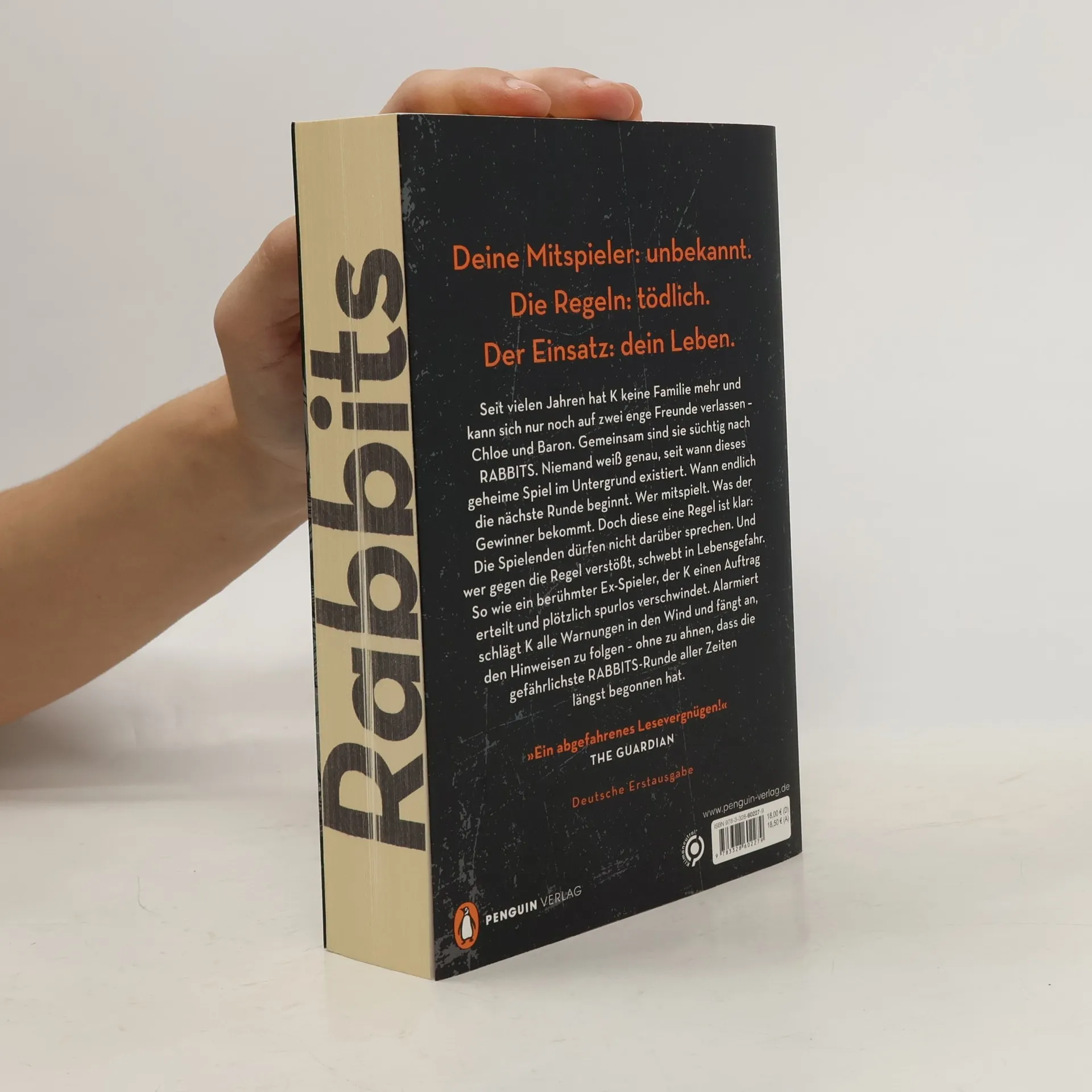 Deine Mitspieler: unbekannt. Die Regeln: tödlich. Der Einsatz: Dein Leben. Es ist ein normaler Arbeitstag. Du siehst auf die Uhr: 4.44. Du checkst deine Mails, und 44 ungelesene Nachrichten warten auf dich. Schockiert realisierst du, dass heute der 4. April ist – der 4.4. Und als du in dein Auto steigst, um nach Hause zu fahren, zeigt der Kilometerzähler 44.444 an. Zufall? Oder hast du gerade RABBITS für dich entdeckt? Seit vielen Jahren hat K keine Familie mehr und kann sich nur noch auf zwei enge Freunde verlassen – Chloe und Baron. Gemeinsam sind sie süchtig nach RABBITS. Niemand weiß genau, seit wann dieses geheime Spiel im Untergrund existiert. Wann endlich die nächste Runde beginnt. Wer mitspielt. Was der Gewinner bekommt. Doch diese eine Regel ist klar: Die Spieler dürfen nicht darüber sprechen. Und wer gegen die Regel verstößt, schwebt in Lebensgefahr. So wie ein berühmter Ex-Spieler, der K einen Auftrag erteilt und plötzlich spurlos verschwindet. Alarmiert schlägt K alle Warnungen in den Wind und fängt an, den Hinweisen zu folgen – ohne zu ahnen, dass die gefährlichste RABBITS-Runde aller Zeiten längst begonnen hat. »Eine Achterbahnfahrt voller Twists, die sich nahtlos von einer Schatzsuche zu einem Verschwörungsthriller zu einem Escape Room wandelt.« Kirkus Review