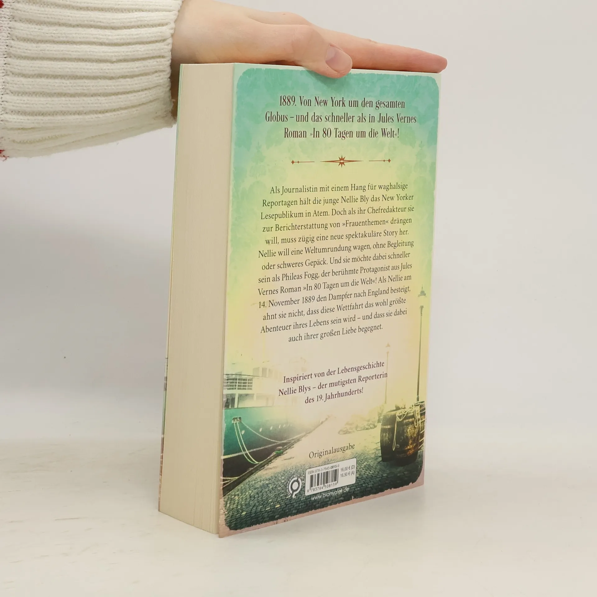 1889. Von New York um den gesamten Globus – und das schneller als in Jules Vernes Roman »In 80 Tagen um die Welt«! Reporterin Nellie Bly zeigt, was sie kann. Als Journalistin mit einem Hang für waghalsige Reportagen hält die junge Nellie Bly das New Yorker Lesepublikum in Atem. Doch als ihr Chefredakteur sie zur Berichterstattung von »Frauenthemen« drängen will, muss zügig eine neue spektakuläre Story her. Nellie will eine Weltumrundung wagen, ohne Begleitung oder schweres Gepäck. Und sie möchte dabei schneller sein als Phileas Fogg, der berühmte Protagonist aus Jules Vernes Roman »In 80 Tagen um die Welt«! Als Nellie am 14. November 1889 den Dampfer nach England besteigt, ahnt sie nicht, dass diese Wettfahrt das wohl größte Abenteuer ihres Lebens sein wird – und dass sie dabei auch ihrer großen Liebe begegnet. Inspiriert von der beeindruckenden Lebensgeschichte der amerikanischen Journalistin Nellie Bly. Sie interessieren sich für spannende Lebensgeschichten? Dann lesen Sie auch: »Fräulein Stinnes und die Reise um die Welt« von Lina Jansen»Monsieur Jammet und der Traum vom Grand Hotel« von Ines ThornAlle Romane sind eigenständige Geschichten und können unabhängig voneinander gelesen werden.