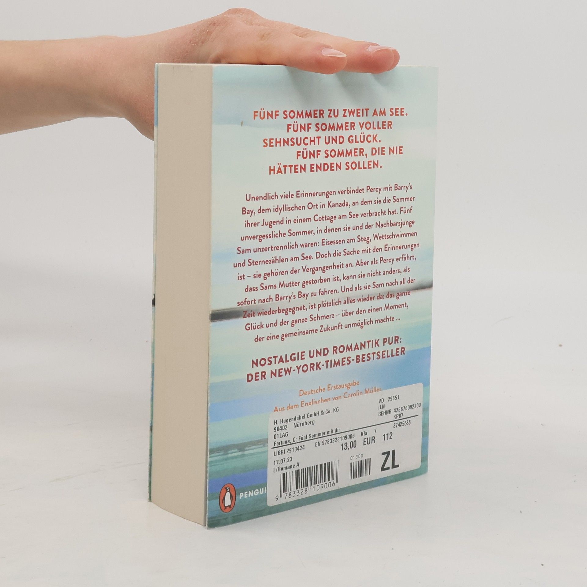 Fünf Sommer zu zweit am See. Fünf Sommer voller Sehnsucht und Glück. Fünf Sommer, die nie hätten enden sollen. Eine unwiderstehliche Friends-to-Lovers-Liebesgeschichte an einem funkelnden kanadischen See – der große New-York-Times-Bestseller! Unendlich viele Erinnerungen verbindet Percy mit Barry’s Bay, dem idyllischen Ort in Kanada, an dem sie die Sommer ihrer Jugend in einem Cottage am See verbracht hat. Fünf unvergessliche Sommer, in denen sie und der Nachbarsjunge Sam unzertrennlich waren: Eisessen am Steg, Wettschwimmen und Sternezählen am See. Doch die Sache mit den Erinnerungen ist – sie gehören der Vergangenheit an. Aber als Percy erfährt, dass Sams Mutter gestorben ist, kann sie nicht anders, als sofort nach Barry’s Bay zu fahren. Und als sie Sam nach all der Zeit wiederbegegnet, ist plötzlich alles wieder da: das ganze Glück und der ganze Schmerz – über den einen Moment, der eine gemeinsame Zukunft unmöglich machte …»Ein Debüt voller Nostalgie und Herz. So wie wir uns an unvergessliche Sommer erinnern, bleibt auch diese Liebesgeschichte weit über die Lektüre hinaus im Herzen.« USA Today