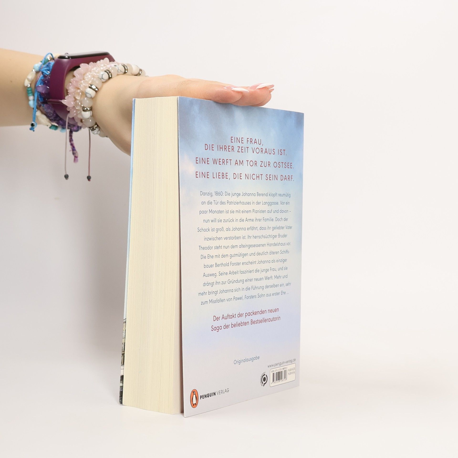 Ihre Zukunft ist ungewiss, doch ihr Mut lässt sie nicht aufgeben. Danzig, 1860: Johanna Berend steht reumütig vor dem Patrizierhaus in der Langgasse. Nach einer Flucht mit einem Pianisten will sie zurück zu ihrer Familie, doch ihr geliebter Vater ist verstorben. Ihr Bruder Theodor, der nun das alteingesessene Handelshaus führt, sieht in der freiheitsliebenden Schwester ein Problem. Als der gutmütige Schiffsbauer Berthold Forster um ihre Hand anhält, ergreift Johanna die Chance, um sich von ihrem Bruder zu befreien. An Forsters Seite entdeckt sie ihr Interesse für Schiffe und drängt ihn, eine neue Werft zu gründen. Dabei bringt sie sich zunehmend in die Führung ein, was Pawel, Forsters Sohn aus erster Ehe, missfällt. Doch Johanna ist klug und mutig genug, ihre Vision zu verfolgen. Allmählich erkennt auch Pawel, dass er in der jungen Frau eine ebenbürtige Partnerin für die Zukunft der Werft hat – und vielleicht auch mehr. Der Auftakt einer mitreißenden Reihe, die voller Dramatik und Atmosphäre steckt und zum Mitfiebern einlädt.