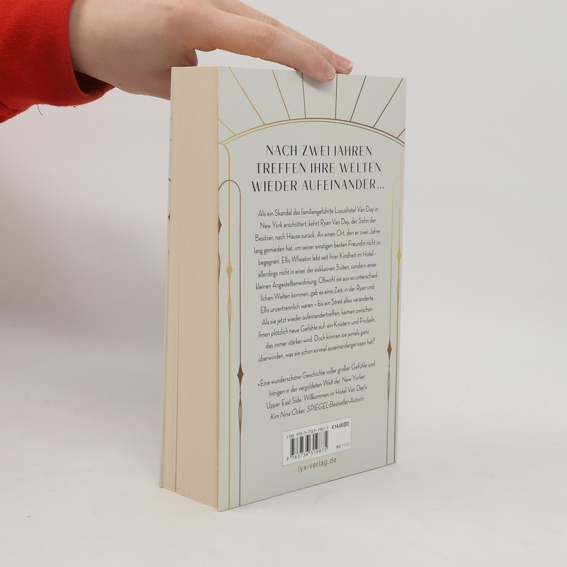 Nach zwei Jahren treffen ihre Welten wieder aufeinander ... Als ein Skandal das familiengeführte Luxushotel Van Day in New York erschüttert, kehrt Ryan Van Day, der Sohn der Besitzer, nach Hause zurück. An einen Ort, den er zwei Jahre lang gemieden hat, um seiner einstigen besten Freundin nicht zu begegnen. Ellis Wheaton lebt seit ihrer Kindheit im Hotel - allerdings nicht in einer der exklusiven Suiten, sondern einer kleinen Angestelltenwohnung. Obwohl sie aus so unterschiedlichen Welten kommen, gab es eine Zeit, in der Ryan und Ellis unzertrennlich waren - bis ein Streit alles veränderte. Als sie jetzt wieder aufeinandertreffen, keimen zwischen ihnen plötzlich neue Gefühle auf: ein Knistern und Prickeln, das immer stärker wird. Doch können sie jemals ganz überwinden, was sie schon einmal auseinandergerissen hat? »Eine wunderschöne Geschichte voller großer Gefühle und Intrigen in der vergoldeten Welt der New Yorker Upper East Side. Willkommen im Hotel VAN DAY !« KIM NINA OCKER , SPIEGEL -Bestseller-Autorin Band 1 der VAN-DAY -Dilogie von Mounia Jayawanth
