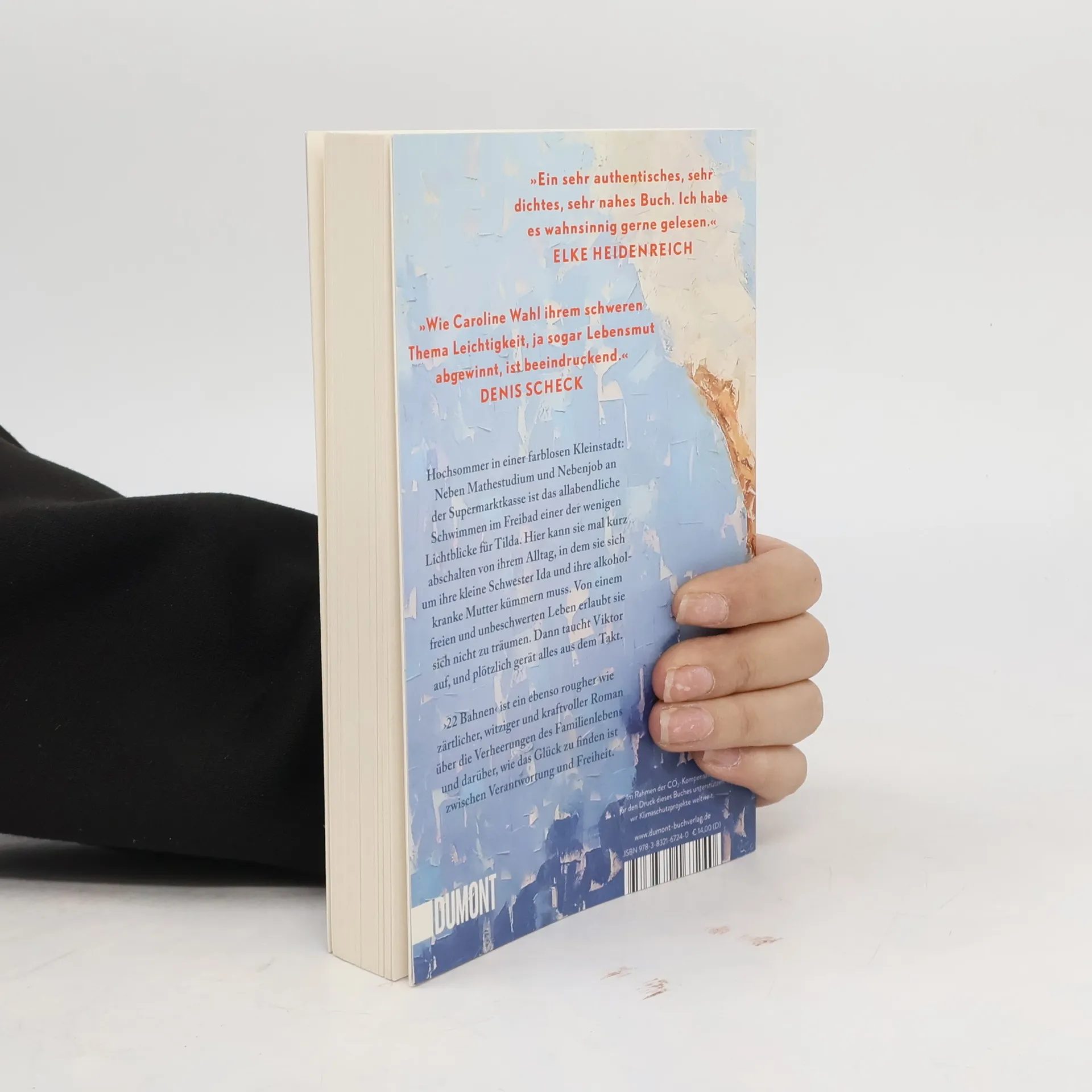Tildas Tage sind strikt durchgetaktet: studieren, an der Supermarktkasse sitzen, sich um ihre kleine Schwester Ida kümmern und an schlechten Tagen auch um die Mutter. Zu dritt wohnen sie im traurigsten Haus der Fröhlichstraße in einer Kleinstadt, die Tilda hasst. Ihre Freunde sind längst weg, leben in Amsterdam oder Berlin, nur Tilda ist geblieben. Denn irgendjemand muss für Ida da sein, Geld verdienen, die Verantwortung tragen. Nennenswerte Väter gibt es keine, die Mutter ist alkoholabhängig. Eines Tages aber geraten die Dinge in Bewegung: Tilda bekommt eine Promotion in Berlin in Aussicht gestellt, und es blitzt eine Zukunft auf, die Freiheit verspricht. Und Viktor taucht auf, der große Bruder von Ivan, mit dem Tilda früher befreundet war. Viktor, der genau wie sie immer 22 Bahnen schwimmt. Doch als Tilda schon beinahe glaubt, es könnte alles gut werden, gerät die Situation zu Hause vollends außer Kontrolle. ›22 Bahnen‹ ist eine raue und gleichzeitig zärtliche Geschichte über die Verheerungen des Familienlebens und darüber, wie das Glück zu finden ist zwischen Verantwortung und Freiheit. »Caroline Wahl findet das Besondere im Alltäglichen und das Tröstliche im Schmerzvollen. Ein berührendes und feinsinniges Buch, mit dem man gern befreundet wäre.« BENEDICT WELLS »Ich bin durch ›22 Bahnen‹ gerauscht und hellauf begeistert. Herzerwärmend, fein, gnadenlos und richtig schön zugleich.« ALINA BRONSKY