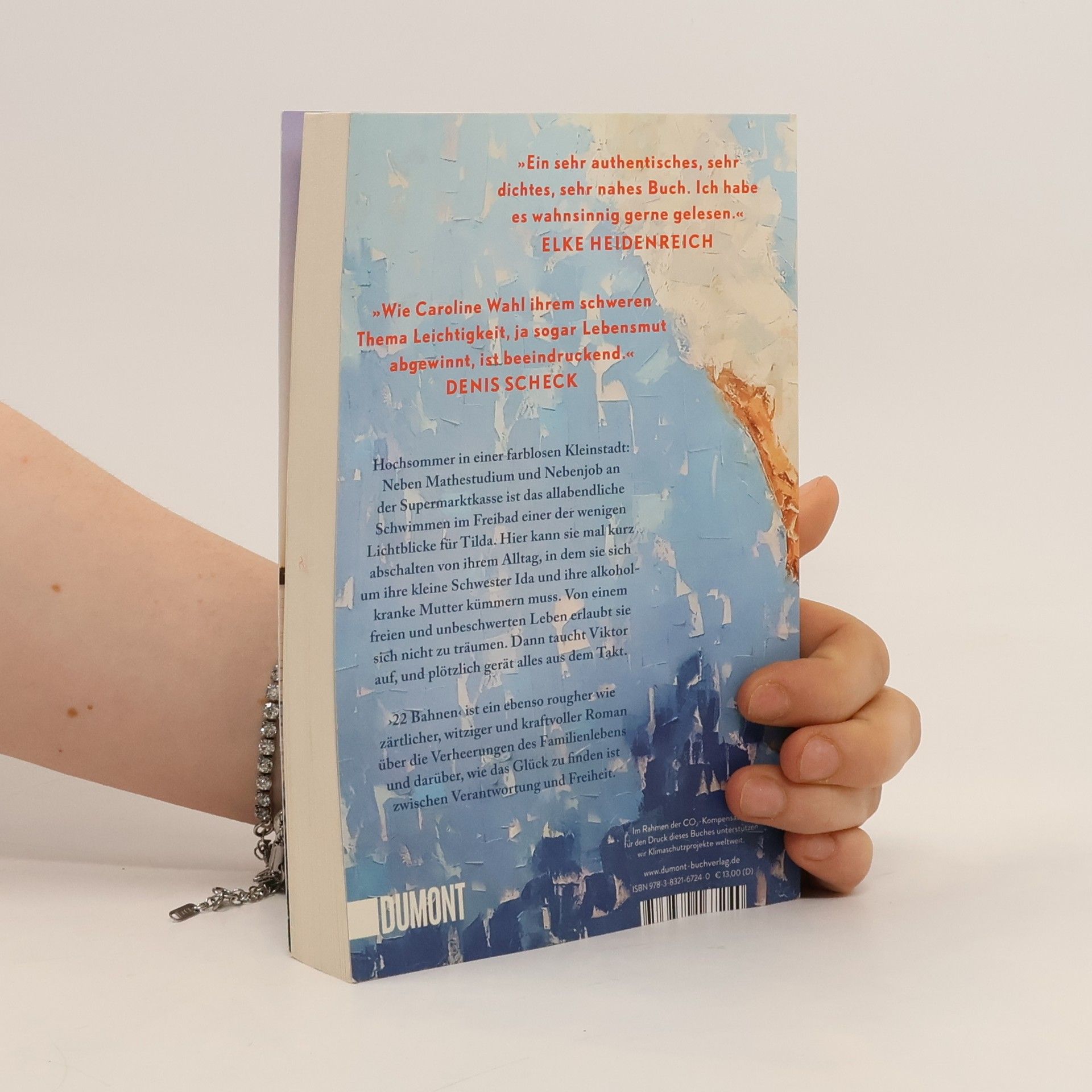 Tildas Tage sind strikt durchgetaktet: studieren, an der Supermarktkasse sitzen, sich um ihre kleine Schwester Ida kümmern und an schlechten Tagen auch um die Mutter. Zu dritt wohnen sie im traurigsten Haus der Fröhlichstraße in einer Kleinstadt, die Tilda hasst. Ihre Freunde sind längst weg, leben in Amsterdam oder Berlin, nur Tilda ist geblieben. Denn irgendjemand muss für Ida da sein, Geld verdienen, die Verantwortung tragen. Nennenswerte Väter gibt es keine, die Mutter ist alkoholabhängig. Eines Tages aber geraten die Dinge in Bewegung: Tilda bekommt eine Promotion in Berlin in Aussicht gestellt, und es blitzt eine Zukunft auf, die Freiheit verspricht. Und Viktor taucht auf, der große Bruder von Ivan, mit dem Tilda früher befreundet war. Viktor, der genau wie sie immer 22 Bahnen schwimmt. Doch als Tilda schon beinahe glaubt, es könnte alles gut werden, gerät die Situation zu Hause vollends außer Kontrolle. ›22 Bahnen‹ ist eine raue und gleichzeitig zärtliche Geschichte über die Verheerungen des Familienlebens und darüber, wie das Glück zu finden ist zwischen Verantwortung und Freiheit. »Caroline Wahl findet das Besondere im Alltäglichen und das Tröstliche im Schmerzvollen. Ein berührendes und feinsinniges Buch, mit dem man gern befreundet wäre.« BENEDICT WELLS »Ich bin durch ›22 Bahnen‹ gerauscht und hellauf begeistert. Herzerwärmend, fein, gnadenlos und richtig schön zugleich.« ALINA BRONSKY