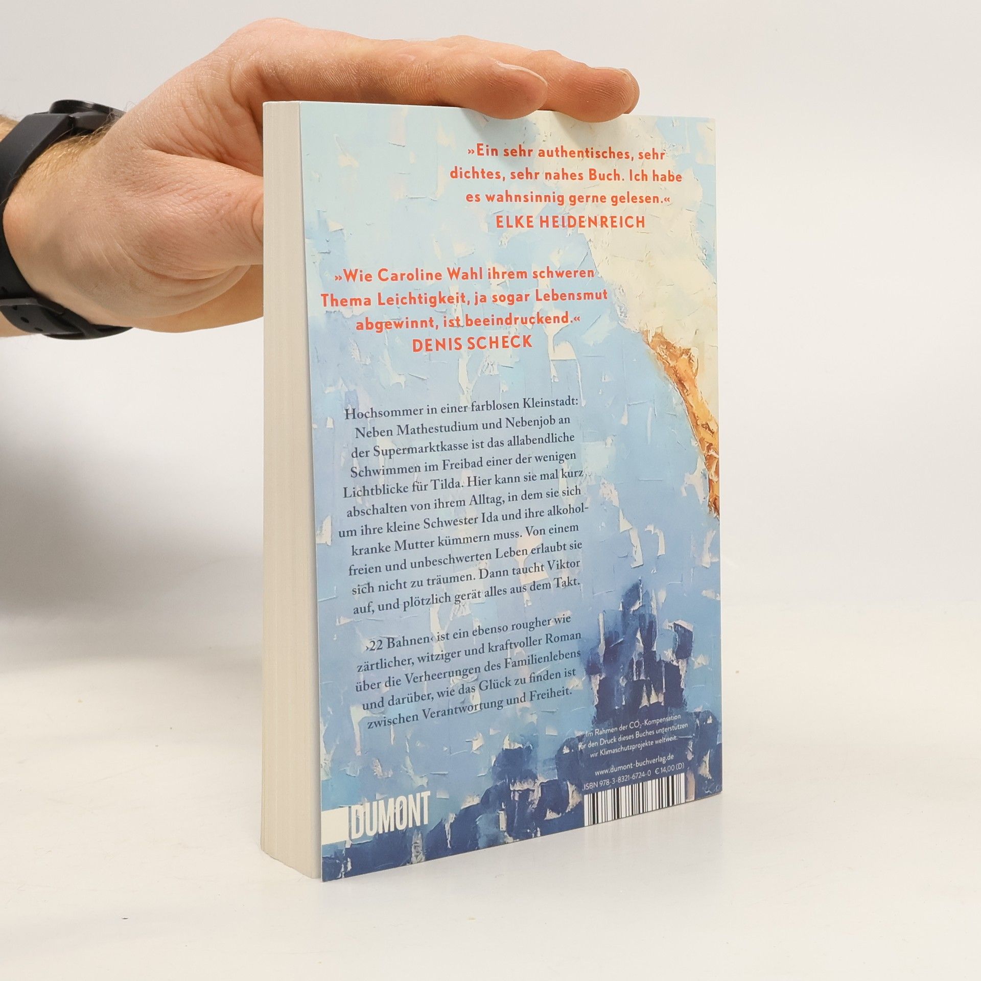 Tildas Tage sind strikt durchgetaktet: studieren, an der Supermarktkasse sitzen, sich um ihre kleine Schwester Ida kümmern und an schlechten Tagen auch um die Mutter. Zu dritt wohnen sie im traurigsten Haus der Fröhlichstraße in einer Kleinstadt, die Tilda hasst. Ihre Freunde sind längst weg, leben in Amsterdam oder Berlin, nur Tilda ist geblieben. Denn irgendjemand muss für Ida da sein, Geld verdienen, die Verantwortung tragen. Nennenswerte Väter gibt es keine, die Mutter ist alkoholabhängig. Eines Tages aber geraten die Dinge in Bewegung: Tilda bekommt eine Promotion in Berlin in Aussicht gestellt, und es blitzt eine Zukunft auf, die Freiheit verspricht. Und Viktor taucht auf, der große Bruder von Ivan, mit dem Tilda früher befreundet war. Viktor, der genau wie sie immer 22 Bahnen schwimmt. Doch als Tilda schon beinahe glaubt, es könnte alles gut werden, gerät die Situation zu Hause vollends außer Kontrolle. ›22 Bahnen‹ ist eine raue und gleichzeitig zärtliche Geschichte über die Verheerungen des Familienlebens und darüber, wie das Glück zu finden ist zwischen Verantwortung und Freiheit. »Caroline Wahl findet das Besondere im Alltäglichen und das Tröstliche im Schmerzvollen. Ein berührendes und feinsinniges Buch, mit dem man gern befreundet wäre.« BENEDICT WELLS »Ich bin durch ›22 Bahnen‹ gerauscht und hellauf begeistert. Herzerwärmend, fein, gnadenlos und richtig schön zugleich.« ALINA BRONSKY