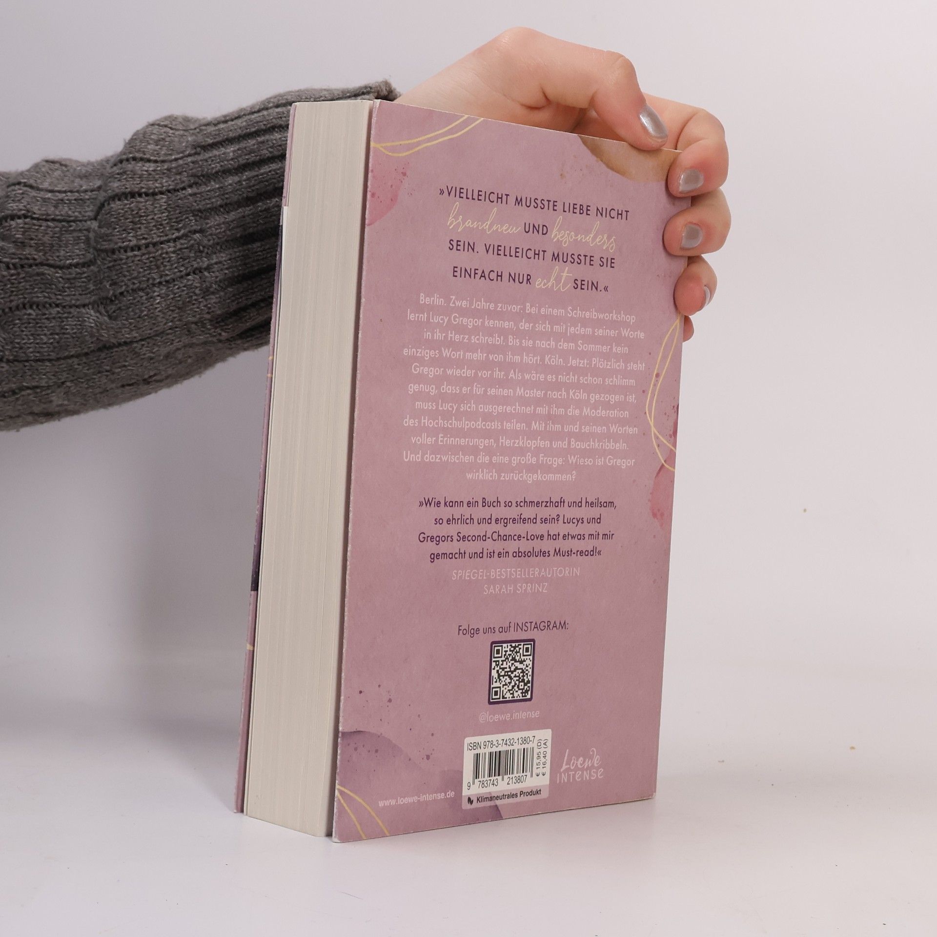 Das Buch ist bei deiner Buchhandlung vor Ort und bei vielen Online-Buchshops erhältlich! „Vielleicht musste Liebe nicht brandneu und besonders sein. Vielleicht musste sie einfach nur echt sein.“ Berlin, zwei Jahre zuvor: Lucy lernt Gregor bei einem Schreibworkshop kennen, und seine Worte berühren ihr Herz. Doch nach dem Sommer bleibt er spurlos verschwunden. Jetzt, in Köln, steht Gregor plötzlich wieder vor ihr. Er hat für seinen Master in die Stadt gezogen und teilt sich mit Lucy die Moderation des Hochschulpodcasts. Alte Erinnerungen kommen hoch, und die Frage bleibt: Warum ist Gregor zurückgekehrt? „Willst du, dass ich nur deswegen bleibe?“ Fragen wie diese vermeidet Lucy normalerweise, doch jetzt hat sie es ausgesprochen und bereut es nicht. Gregor zögert nicht, seine Gefühle zu offenbaren: „Ich will, dass du bleibst, weil ich verfickt noch mal nichts mit dir vergessen möchte.“ In dieser New Adult-Trilogie beleuchtet die SPIEGEL-Bestsellerautorin Gabriella Santos de Lima toxische (Nicht-)Beziehungen, Leistungsdruck und die Bedeutung offener Kommunikation – sei es in einem Podcast oder in der Liebe. Sie fängt die Lebenswelt junger Erwachsener in Zeiten von TikTok ein und erzählt eine wunderbare Liebesgeschichte über Liebe auf den zweiten Blick. Klimaneutrales Produkt – Wir unterstützen ausgewählte Klimaprojekte!