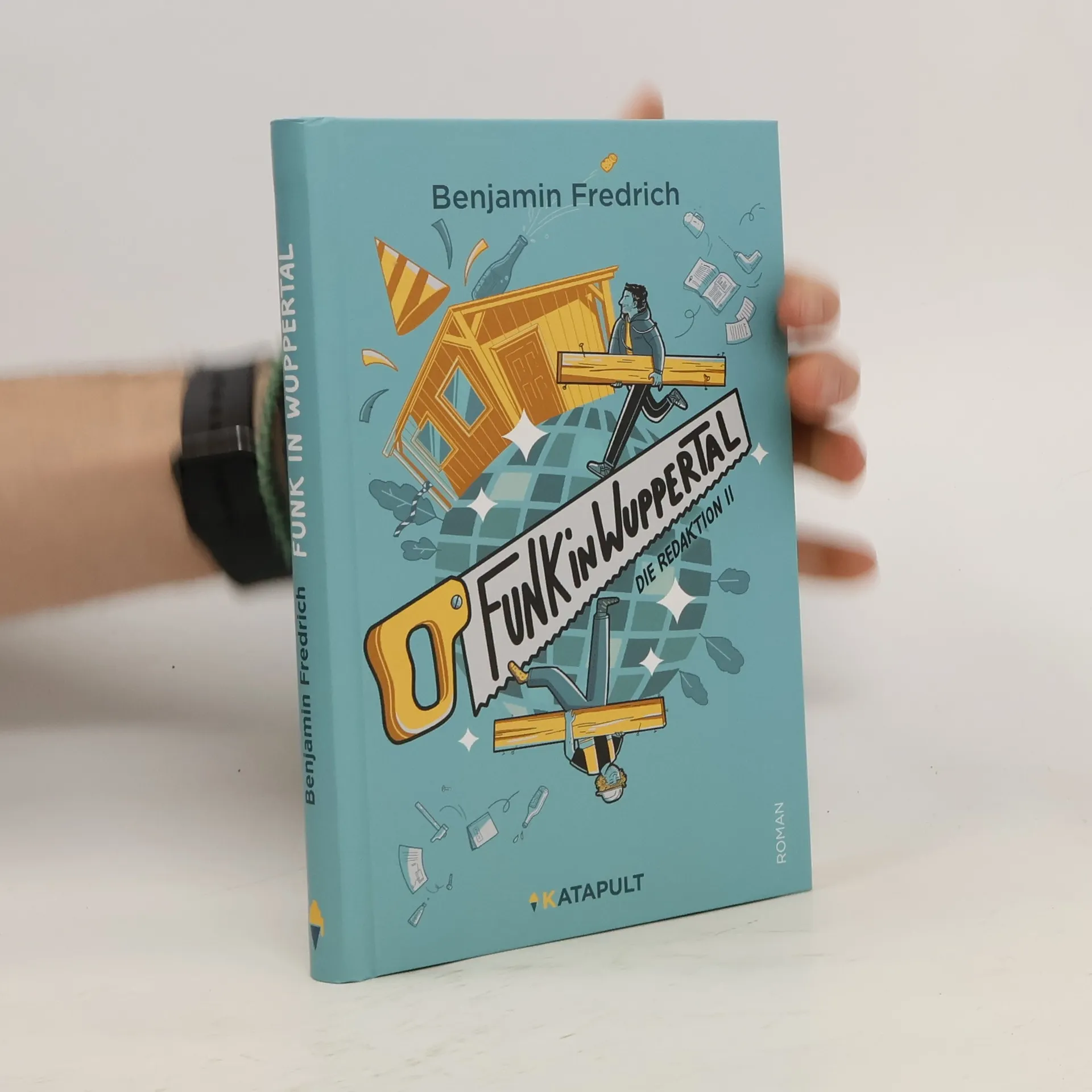 Als Layouter Tim eintausend Quadratmeter Dachpappe für ein dreißig Quadratmeter großes Dach bestellt und Rico zwei schwere Müllsäcke mit letzter Kraft aus dem Wald schleift, ist es so weit: Die Greifswalder Polizei nimmt ihre Ermittlungen auf. Der weltweit erste Baustellenroman entpuppt sich als echter Müllsack-Krimi. Im Mittelpunkt steht KATAPULT, das eine riesige DDR-Schule renoviert, sich damit einigermaßen verzettelt und sein wachsendes Team nicht annähernd unter Kontrolle hat. Als Chefredakteur Benni F. herausfindet, was sich tatsächlich in den Müllsäcken befindet, wird ihm klar, dass er kurz vor der Katastrophe steht. Funk in Wuppertal ist die Fortsetzung von „Die Redaktion“.