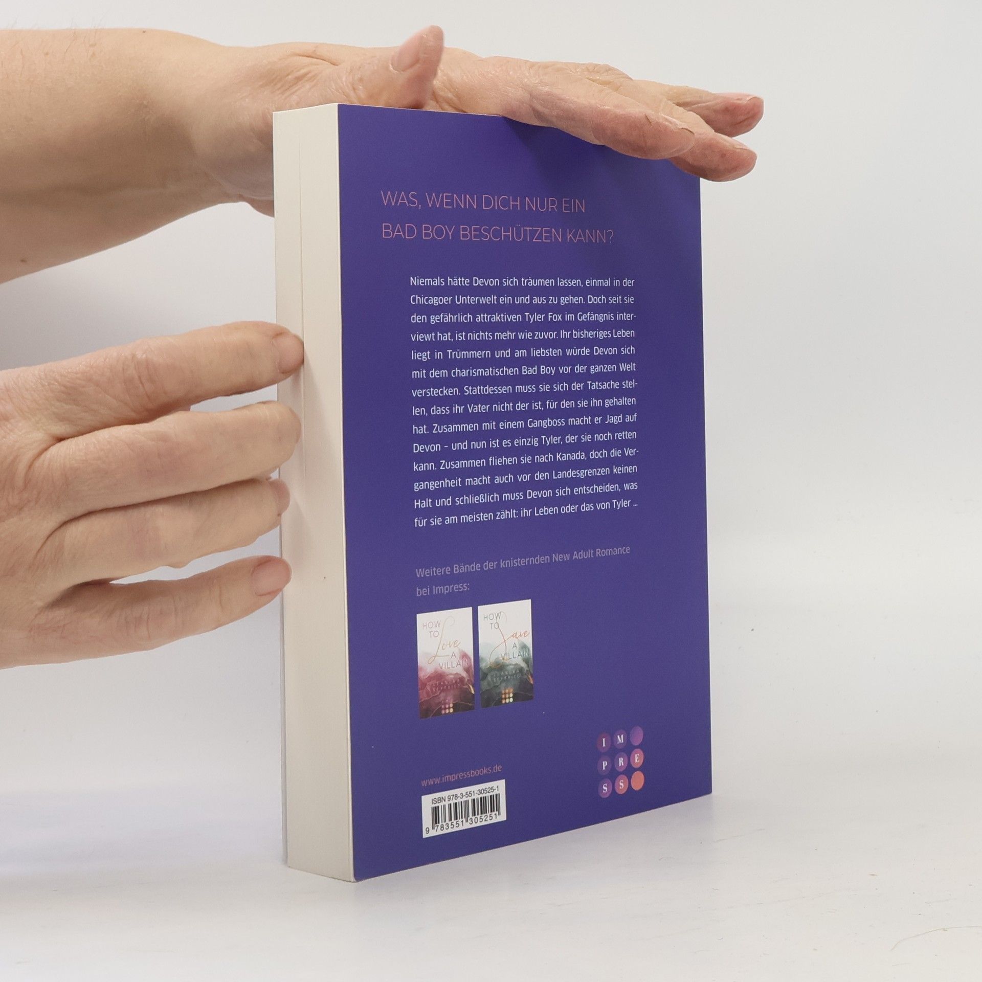 **Was ist, wenn dich nur ein Very Bad Boy beschützen kann?** Niemals hätte Devon sich träumen lassen, einmal in der Chicagoer Unterwelt ein und aus zu gehen. Doch seit sie den gefährlich attraktiven Tyler Fox im Gefängnis interviewt hat, ist nichts mehr wie zuvor. Ihr bisheriges Leben liegt in Trümmern und am liebsten würde Devon sich mit dem charismatischen Bad Boy vor der ganzen Welt verstecken. Stattdessen muss sie sich der Tatsache stellen, dass ihr Vater nicht der ist, für den sie ihn gehalten hat. Zusammen mit einem Gangboss macht er Jagd auf Devon – und nun ist es einzig Tyler, der sie noch retten kann. Zusammen fliehen sie nach Kanada, doch die Vergangenheit macht auch vor den Landesgrenzen keinen Halt und schließlich muss Devon sich entscheiden, was für sie am meisten zählt: ihr Leben oder das von Tyler … //Dies ist der zweite Band der knisternden New Adult Romance »Chicago-Love«. Alle Bände der Reihe bei Impress: -- How to Love a Villain (Chicago-Love 1) -- How to Keep a Villain (Chicago-Love 2) -- How to Save a Villain (Chicago-Love 3)//