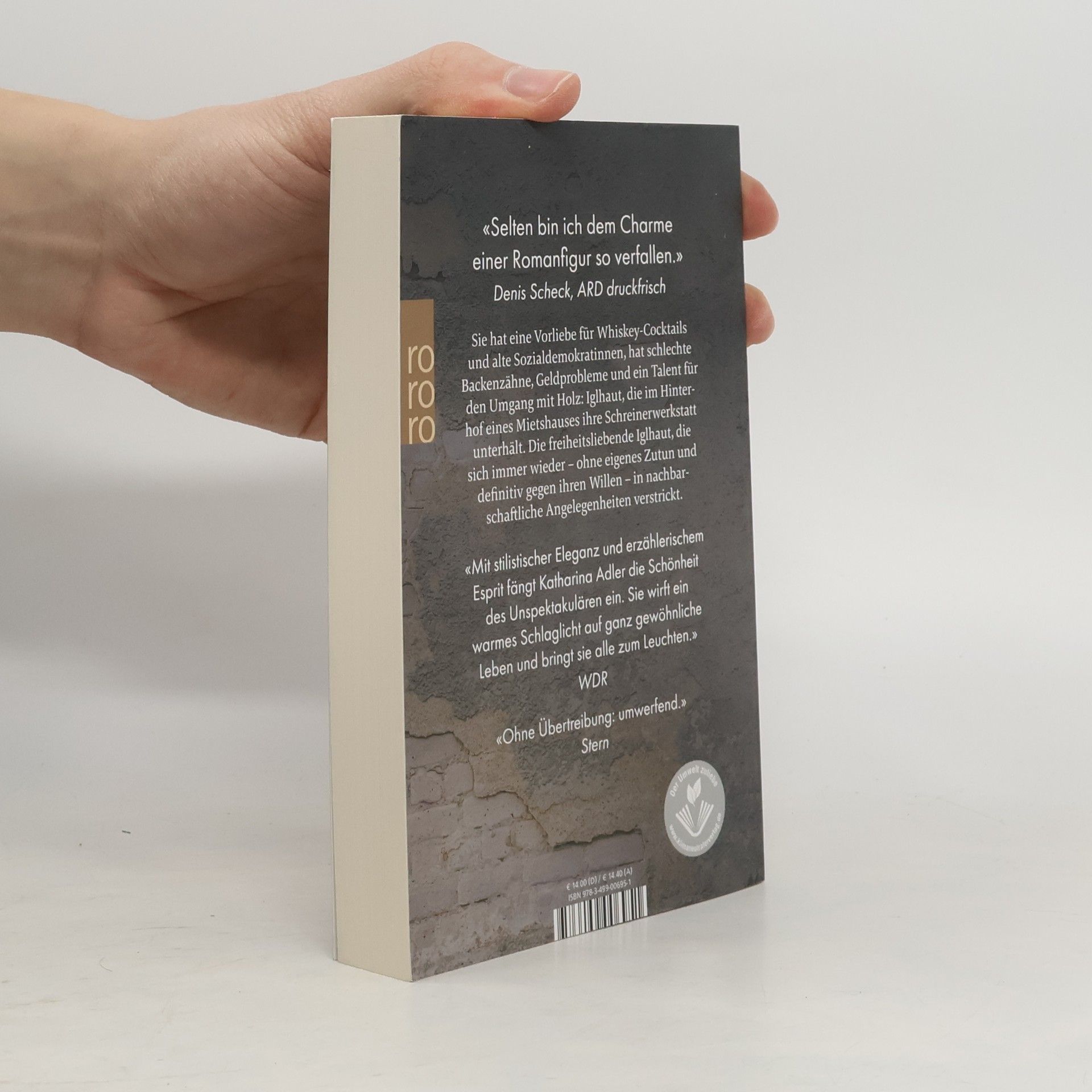 «Selten bin ich dem Charme einer Romanfigur so verfallen.» Denis Scheck, ARD druckfrisch Sie hat eine Vorliebe für Whiskey-Cocktails und alte Sozialdemokratinnen, hat schlechte Backenzähne, Geldprobleme und ein Talent für den Umgang mit Holz: Iglhaut, die im Hinterhof eines Mietshauses ihre Schreinerwerkstatt unterhält. Die freiheitsliebende Iglhaut, die sich immer wieder – ohne eigenes Zutun und definitiv gegen ihren Willen – in nachbarschaftliche Angelegenheiten verstrickt. Katharina Adlers Iglhaut ist eine Heldin nach Art alter Götter. Aus dem Holz für verlässliche Beziehungen ist sie nicht gemacht, weder in der Liebe noch im Geschäft. Auch ihre Laune: so wandelbar wie das Wetter. Dabei will sie eigentlich nur ihre Ruhe, Ruhe für sich, die Hündin und ihre Arbeit. Doch dann steht da plötzlich eine alte, komplizierte Liebe, drängen immer mehr Anwohner und ihre Geschichten – cholerisch, komisch, ungebeten – in diesen zutiefst menschlichen Roman. Einen Roman, der das Leben feiert, ohne die Augen zu verschließen vor dem, was ist.