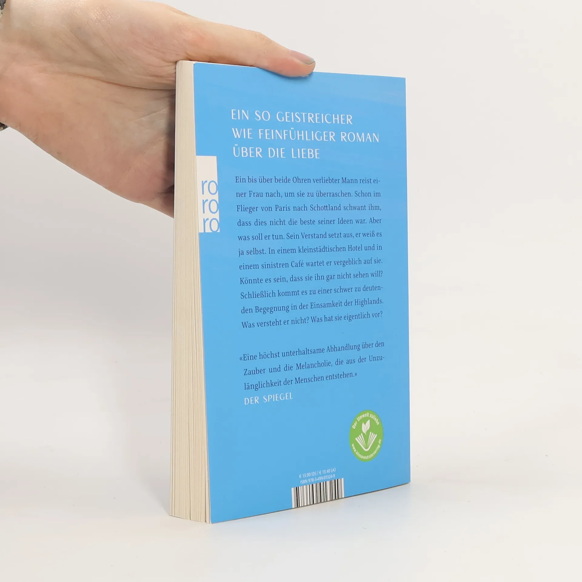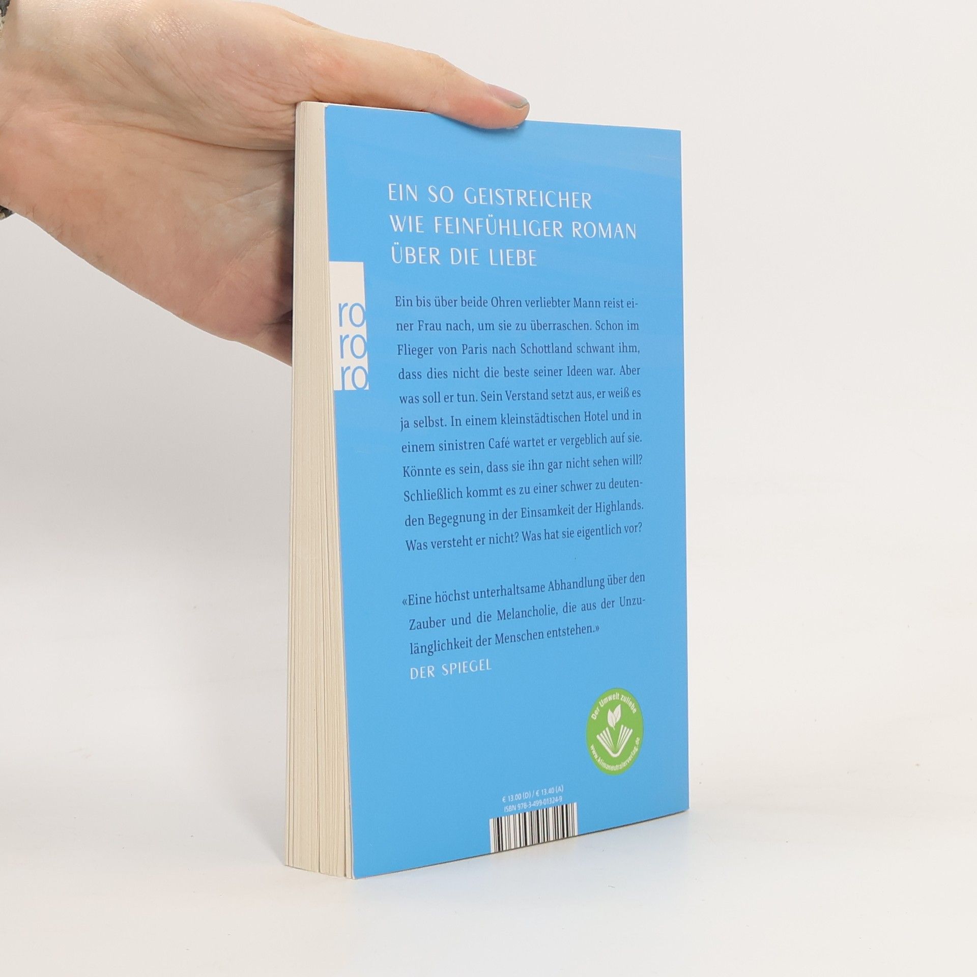 Wie in dem Bestseller Die Anomalie beginnt auch hier alles in einem Flugzeug. Ein bis über beide Ohren verliebter Mann sitzt im Flieger von Paris nach Schottland. Er reist einer Frau nach, um sie zu überraschen. Bald schon schwant ihm, dass dies nicht die beste seiner Ideen war. Denn sie hat ihn nicht eingeladen. Aber was soll er tun? Sein Verstand setzt aus, er weiß es ja selbst. In einem kleinstädtischen Hotel und in einem sinistren Café wartet er vergeblich auf sie. Könnte es sein, dass sie ihn überhaupt nicht sehen will? Schließlich kommt es zu einer schwer zu deutenden Begegnung in der Einsamkeit der Highlands. Was versteht er nicht? Was hat sie eigentlich vor? Er fühlt sich wie eins der vielen Schafe, die ihn anglotzen. Mit französischer Leichtigkeit schreibt Le Tellier über das ewige Abenteuer Liebe. Präzise, mit tiefgründigem Humor, lakonischer Weisheit und vor allem unwiderstehlichem Charme erzählt er eine Geschichte, in der sich Leserinnen wie Leser gleichermaßen wiederfinden.
